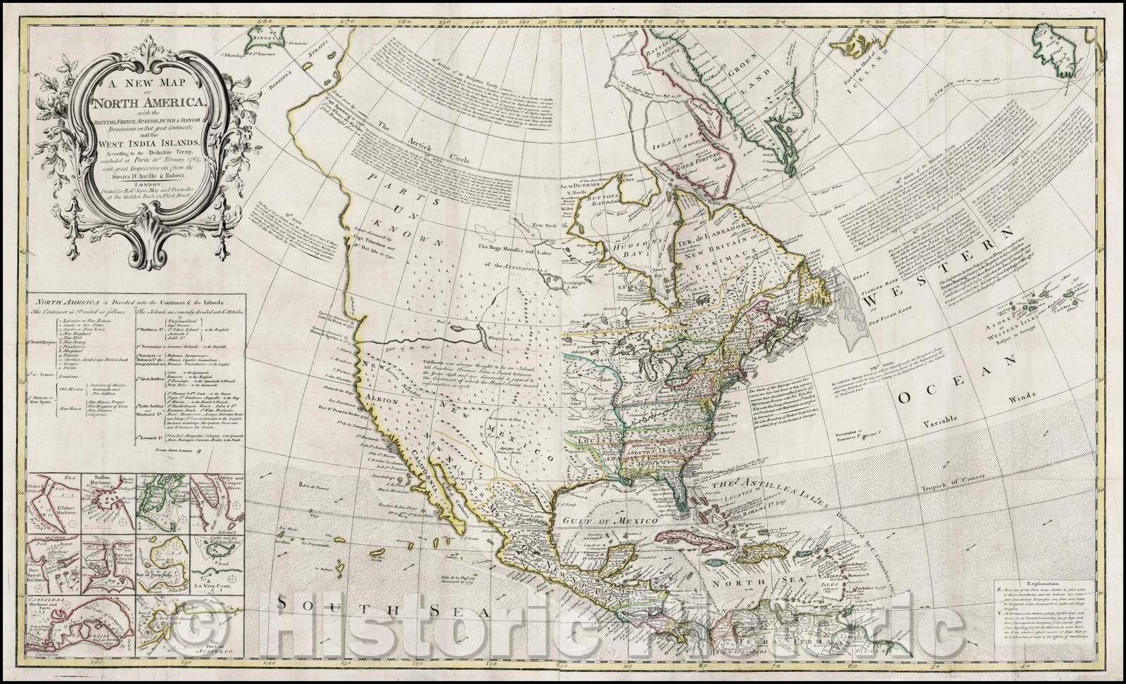 Historic Map - North America, with the British, French, Spanish, Dutch & Danish Dominions on that great Continent; and the West India Islands, 1763, Robert Sayer v1