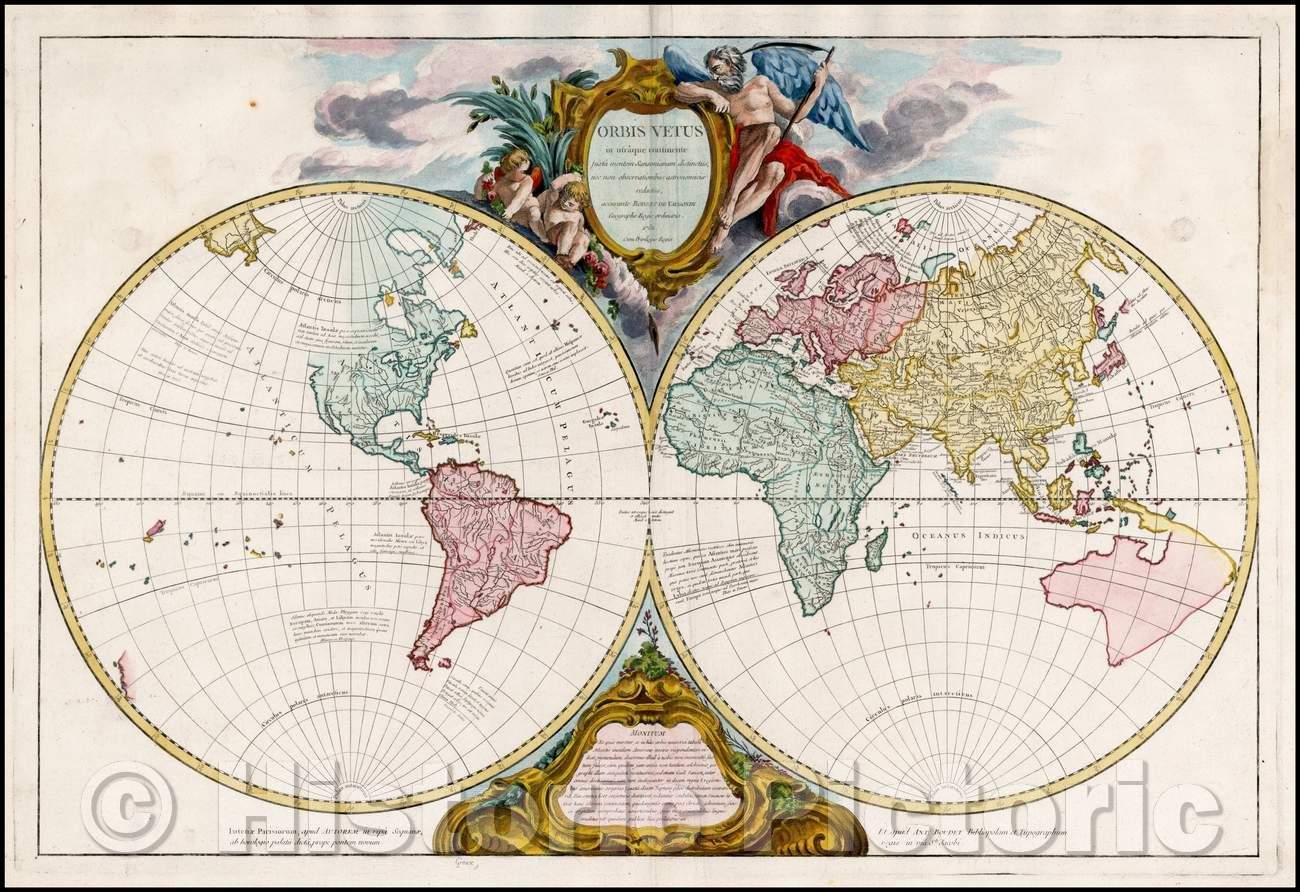 Historic Map - Orbis Vetus in utraque continente, 1751, Gilles Robert de Vaugondy - Vintage Wall Art