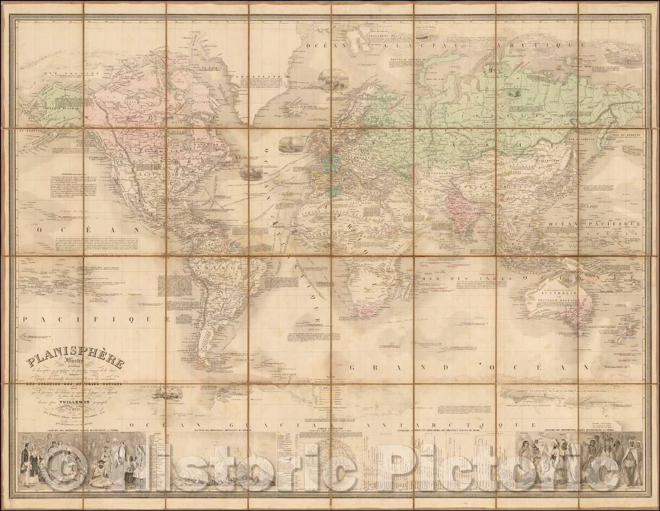 Historic Map - Planisphere Elementaire et Illustre Iniquant La Description Geographique Des Parties Connues De La Terre. Les decouvertes maritimes et continentales, 1856 v1