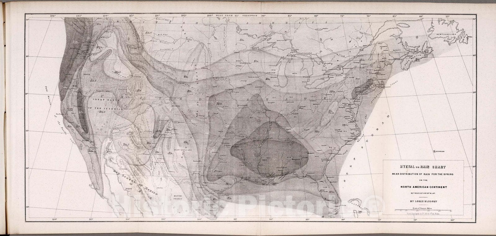 Historic Map : Survey Book, Hyetal or rain chart: Mean distribution of rain for the Spring on the North American Continent 1857 - Vintage Wall Art