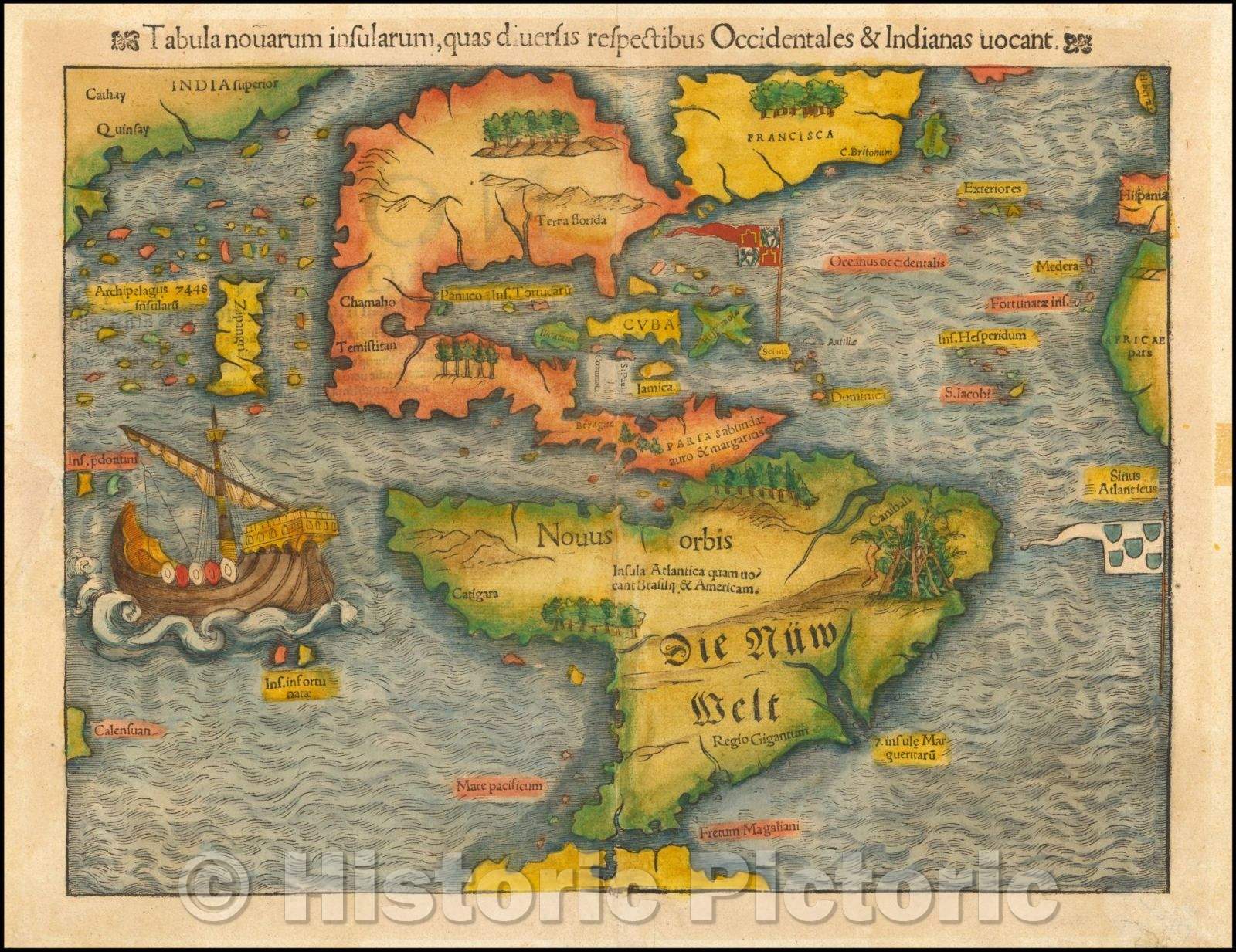 Historic Map - Tabula novarum insularum, quas Diversis respectibus Occidentales & Indianas uocant. 1st Map of the continent of America, 1554, Sebastian M?nster v1