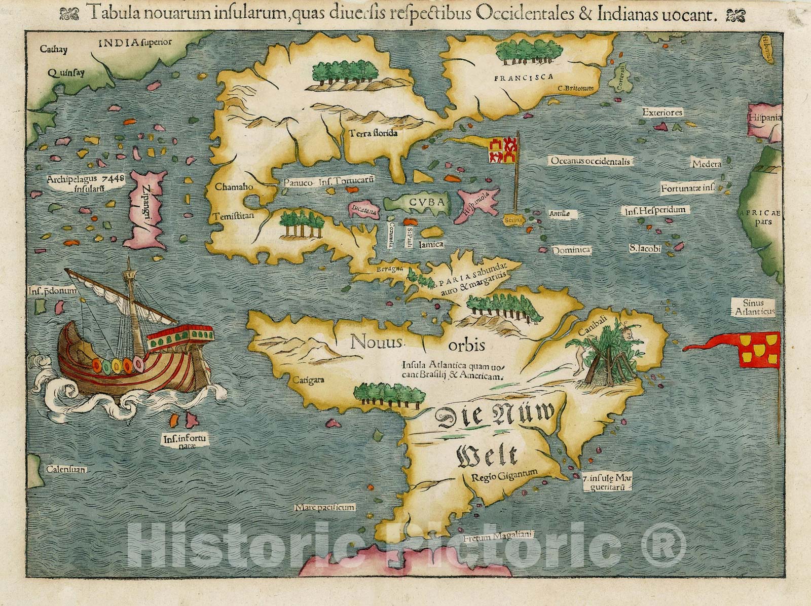 Historic Map - Tabula novarum insularum, quas Diversis respectibus Occidentales & Indianas uocant. 1st Map of the continent of America, 1550, Sebastian M?nster - Vintage Wall Art