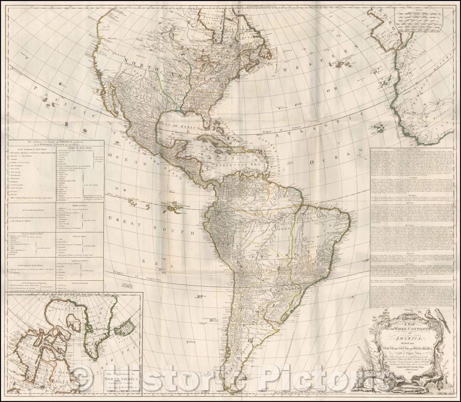 Historic Map - The Whole Continent of America. Divided Into North and South and West Indies, 1772, Robert Sayer - Vintage Wall Art
