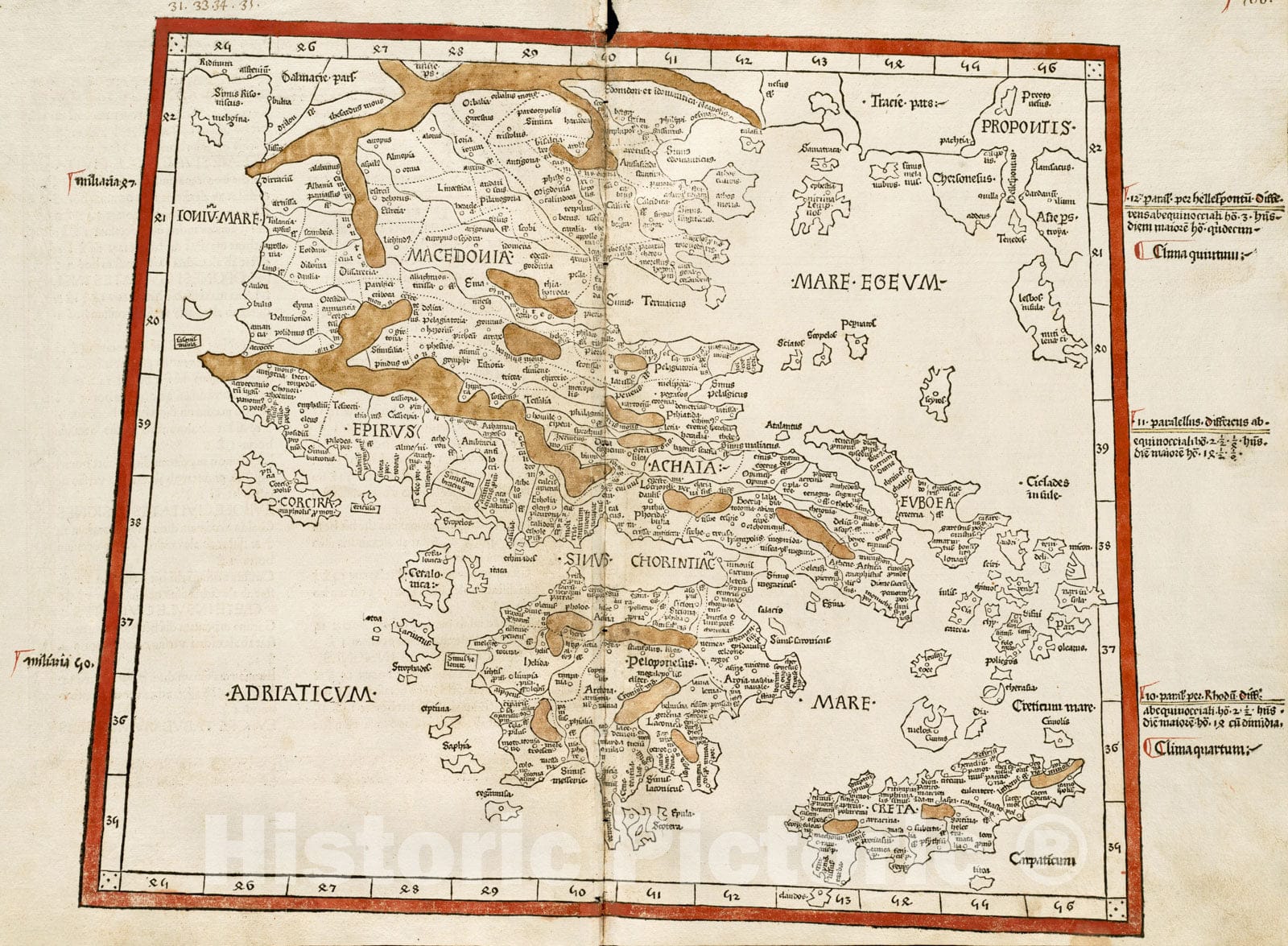 Historical Map, 1482 Decima Europe tabula continent Macedonia et Epirum et Achaiam & Peloponesum, Vintage Wall Art
