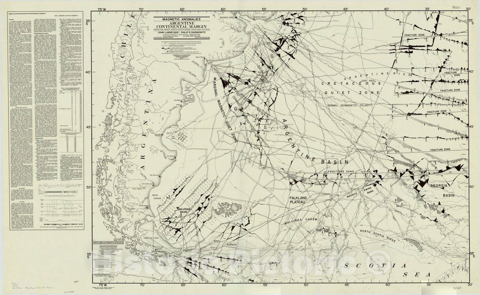 Map : Argentina 1977, Magnetic anomalies, Argentine continental margin : Argentine Basin, North Scotia Ridge, Falkland Plateau , Antique Vintage Reproduction