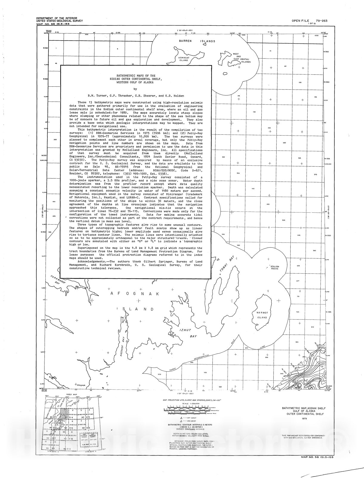 Map : Bathymetric map, Kodiak Shelf, Gulf of Alaska outer continental shelf, 1979 Cartography Wall Art :