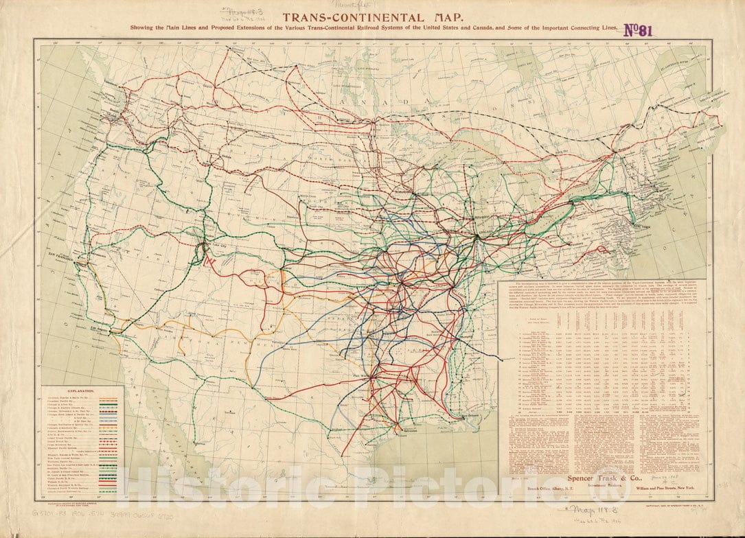 Historical Map, c.1906 Trans-Continental map : Showing The Main Lines and Proposed extentions of The Various Trans-Continental Railroad Systems of The Unites States, Vintage Wall Art
