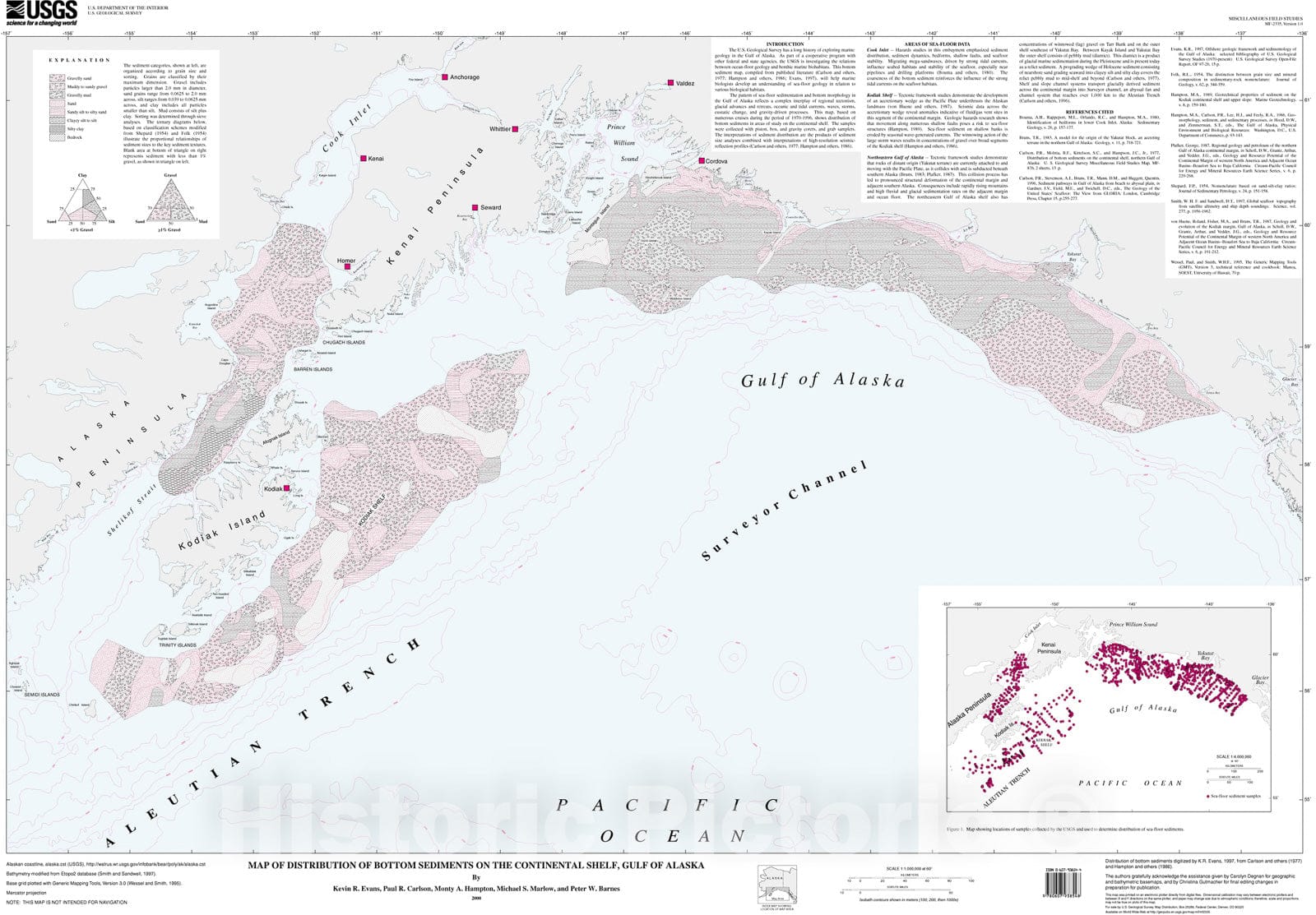 Map : Map of distribution of bottom sediments on the continental shelf, Gulf of Alaska, 2000 Cartography Wall Art :