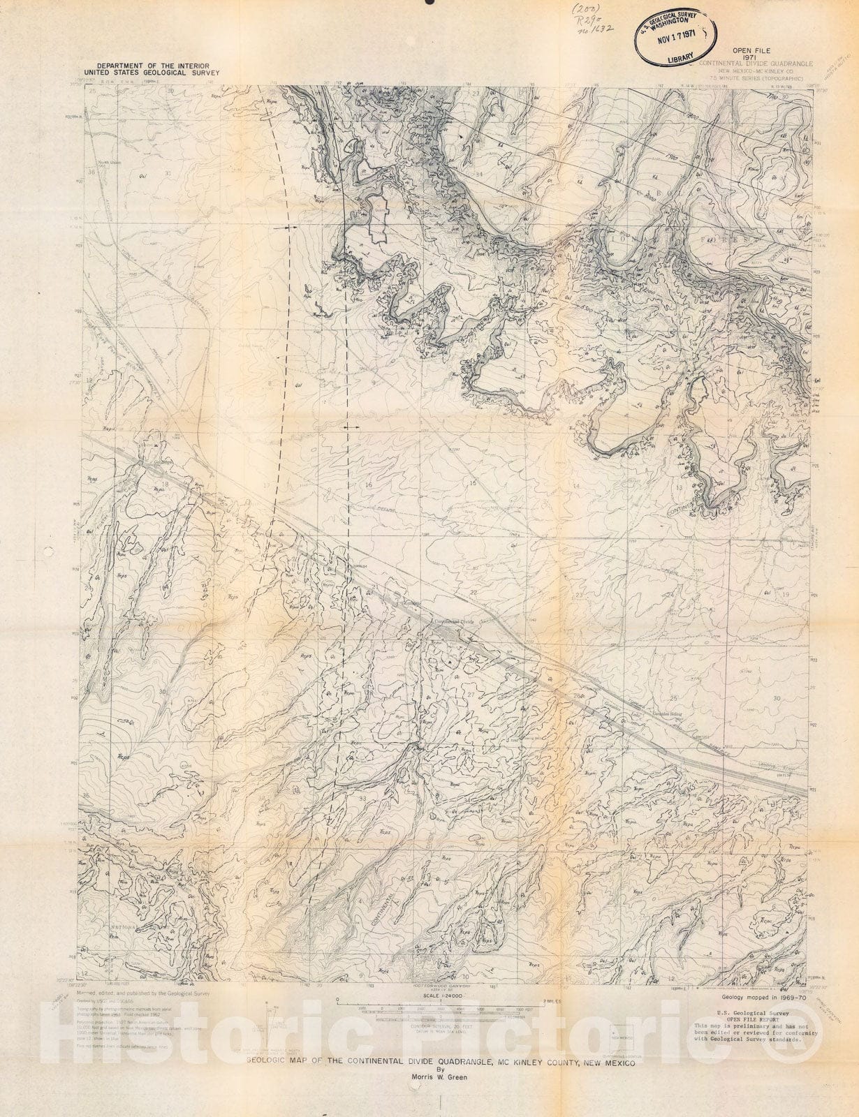 Map : Geologic map of the Continental Divide quadrangle, McKinley County, New Mexico, 1971 Cartography Wall Art :