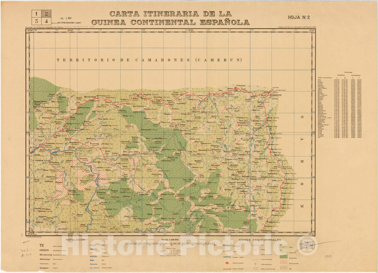 Map : Guinea 1959, Carta itineraria de la Guinea Continental Espanola , Antique Vintage Reproduction
