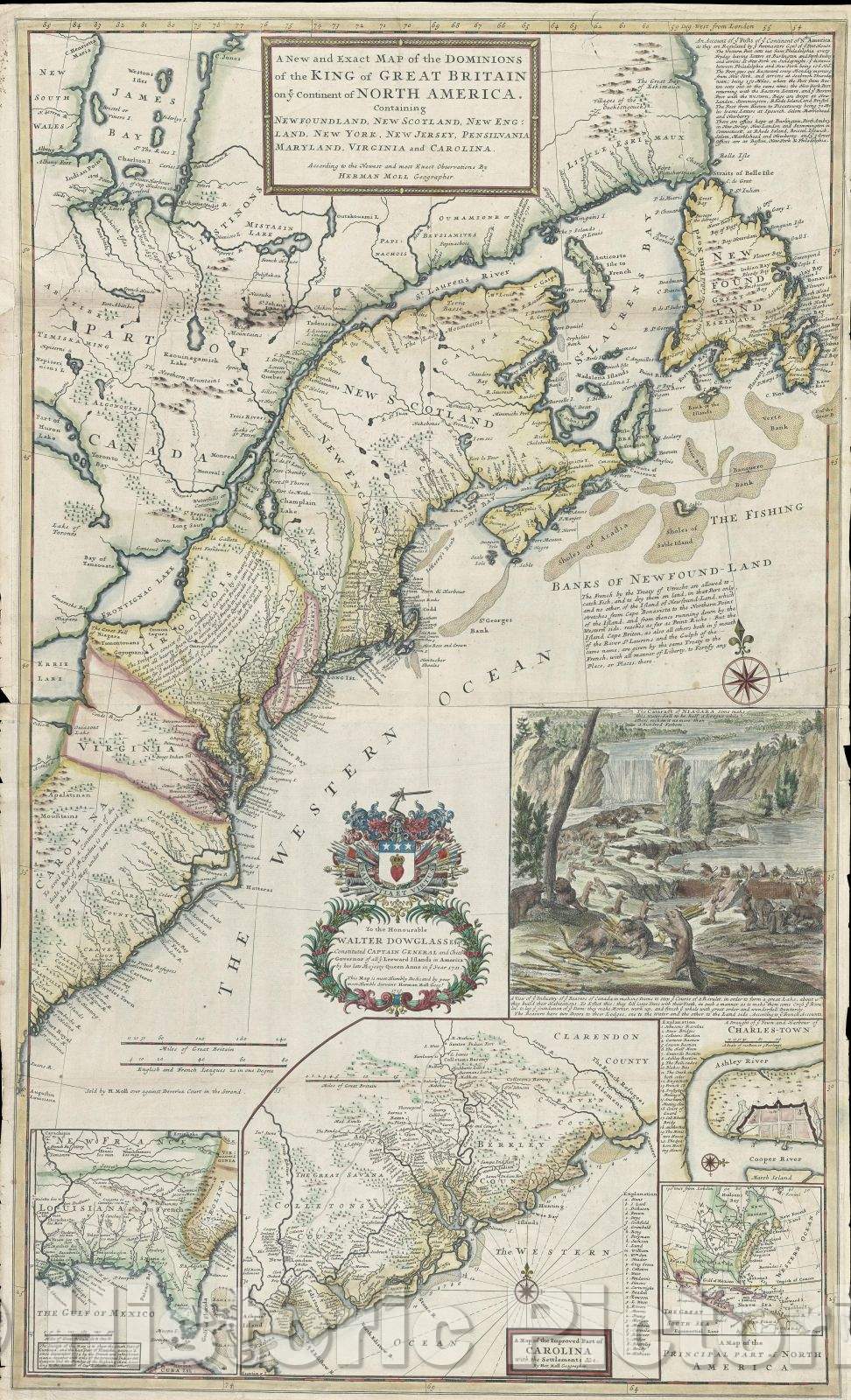 Historic Map : A New and Exact Map of the Dominions of the King of Great Britain on continent of North America : containing Newfoundland, New Scotland, New England, 1715 , Vintage Wall Art