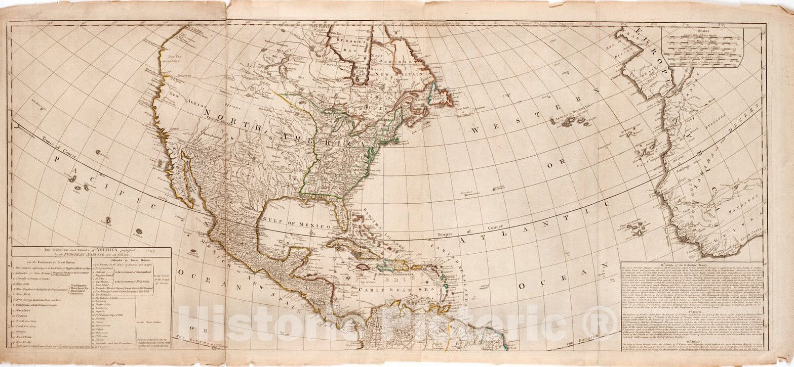 Historical Map, A New map of the whole continent of America, divided into North and South and West Indies. : With a descriptive account of the European possessions, Vintage Wall Art