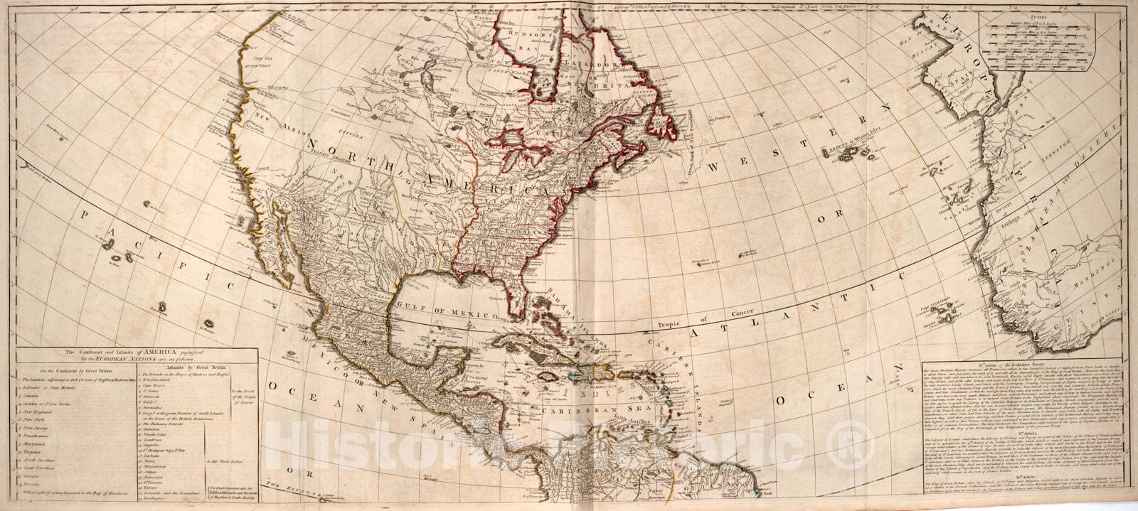 Historical Map, A New map of The Whole Continent of America, Divided into North and South and West Indies, Vintage Wall Art