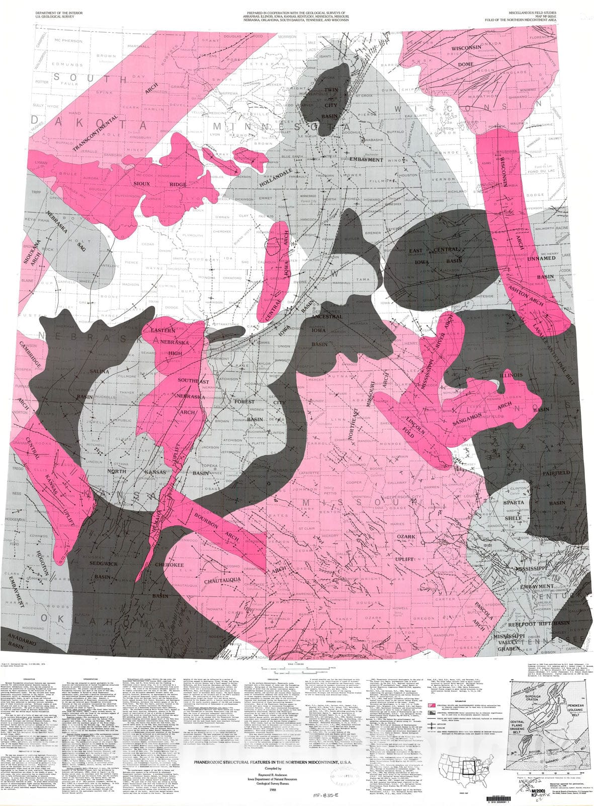 Map : Phanerozoic structural features in the northern midcontinent, U.S.A., 1987 Cartography Wall Art :