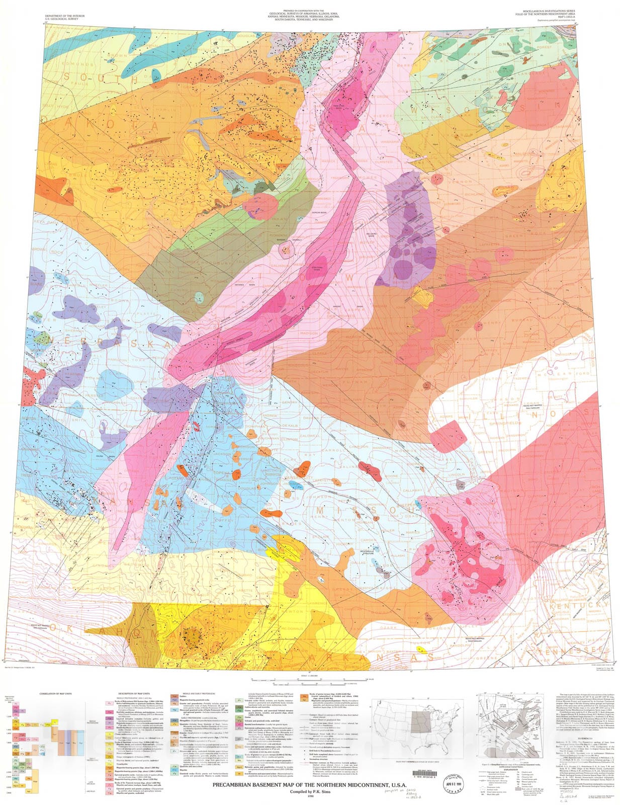 Map : Precambrian basement map of the northern midcontinent, U.S.A., 1990 Cartography Wall Art :