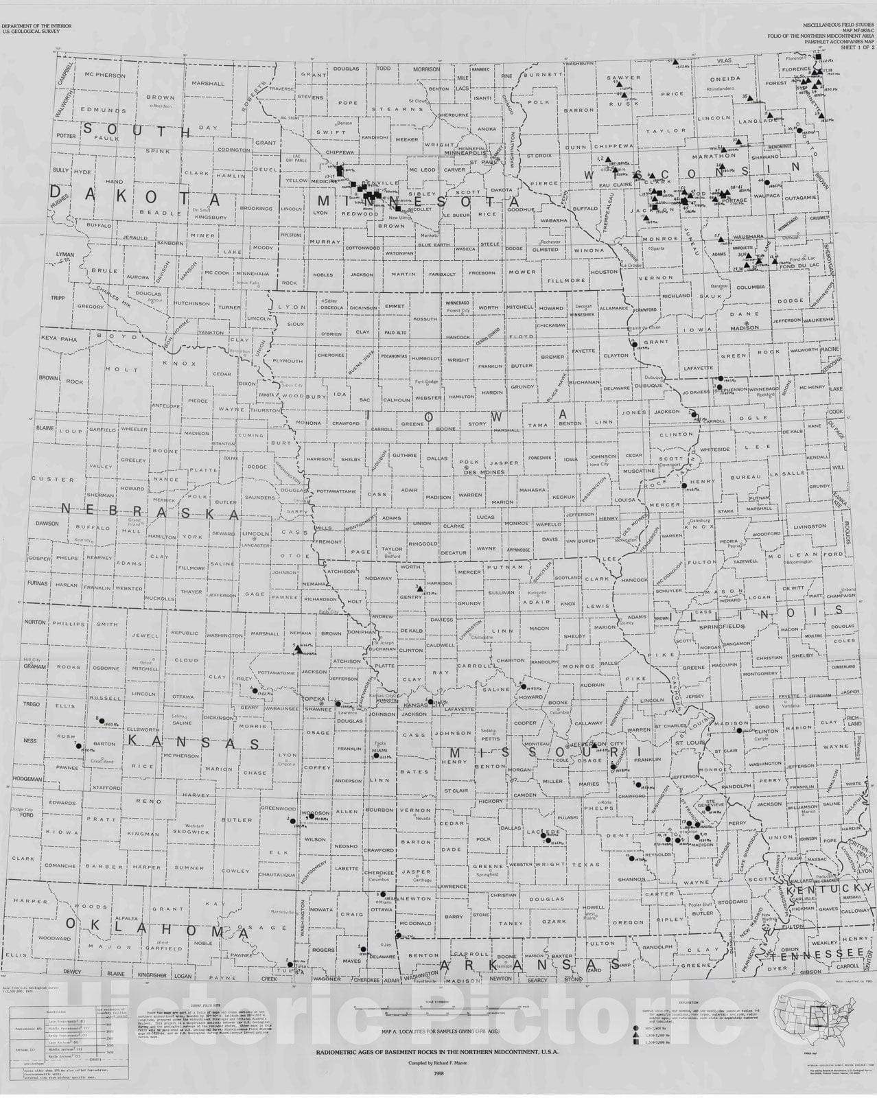 Map : Radiometric ages of basement rocks in the northern midcontinent, U.S.A., 1988 Cartography Wall Art :