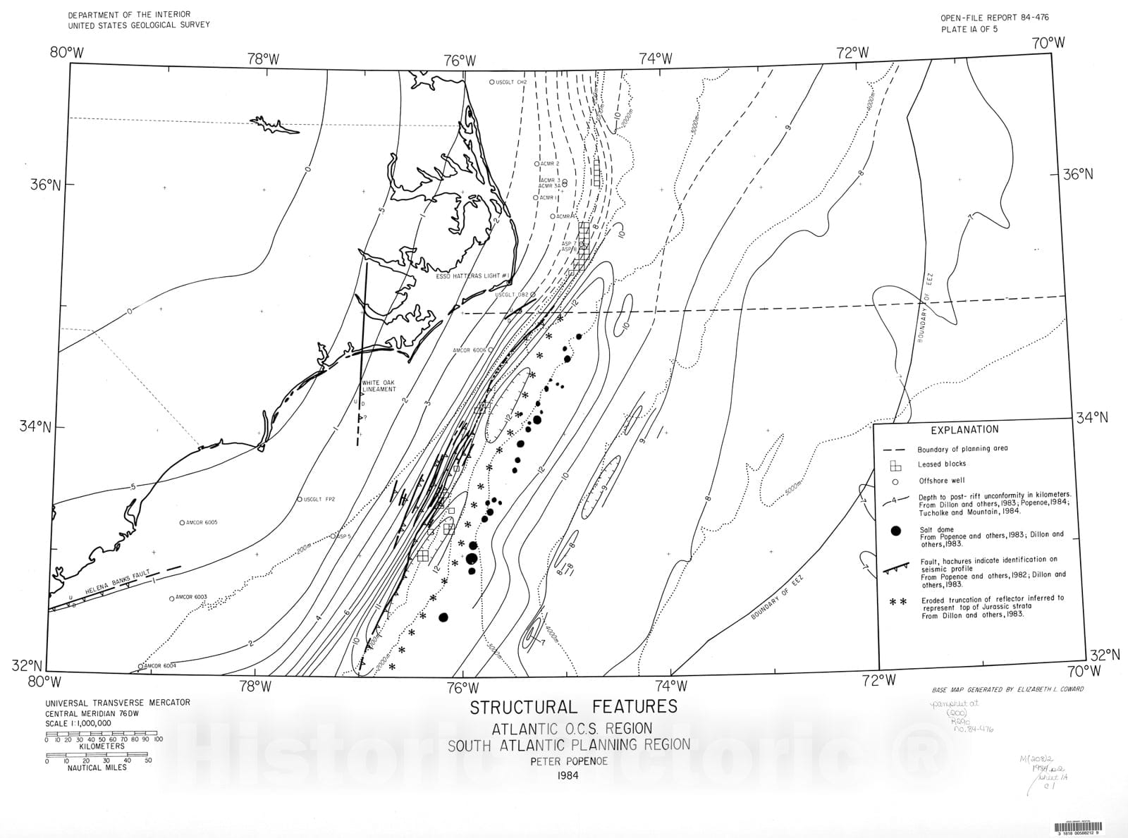 Map : Summary geologic report for the South Atlantic Outer Continental Shelf (OCS) Planning Area, (a supplement to U.S. Geological Surve, 1984 Cartography Wall Art :