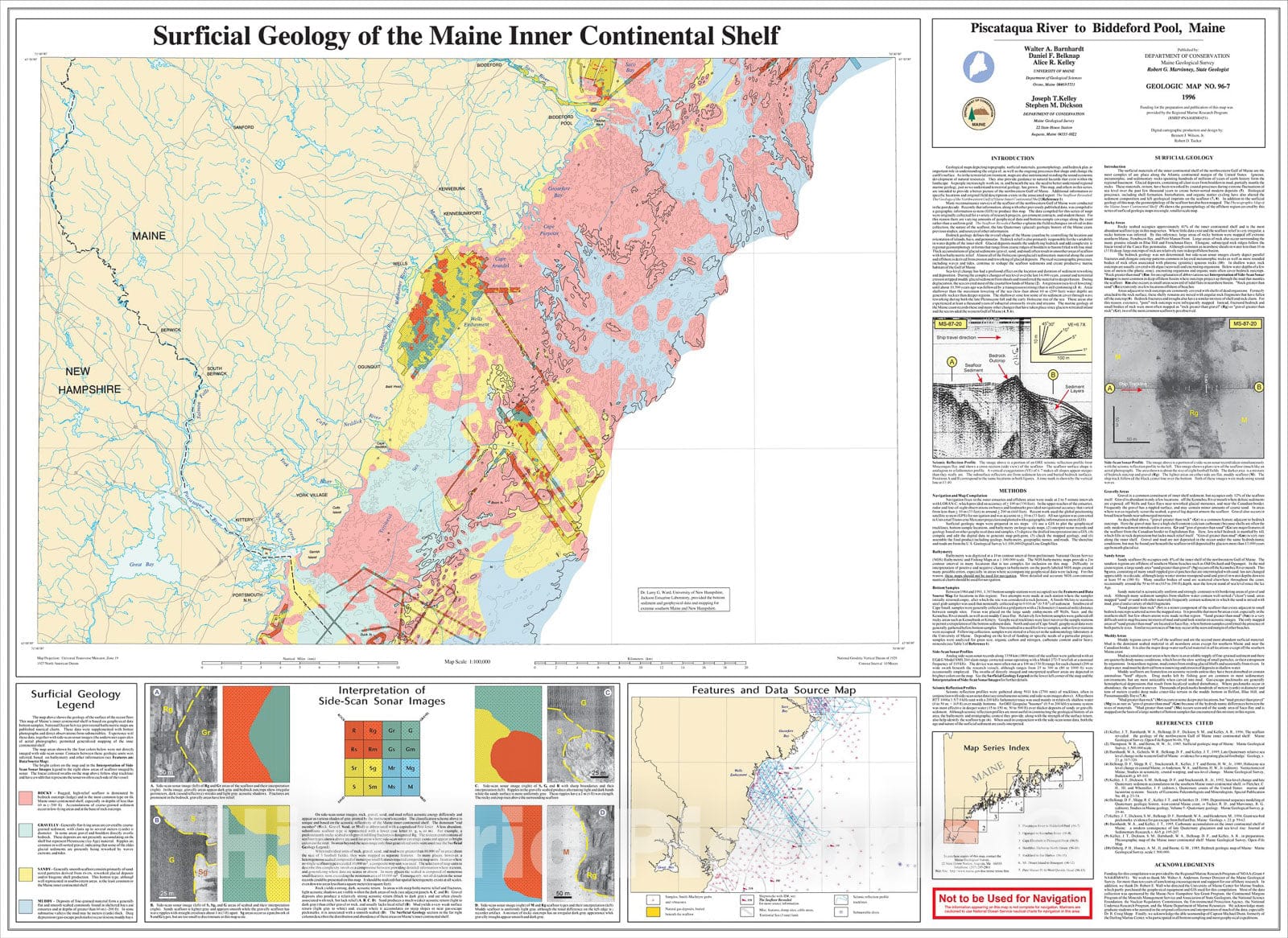 Map : Surficial Geology of the Maine Inner Continental Shelf - Piscataqua River to Biddeford Pool, Maine, 1996 Cartography Wall Art :