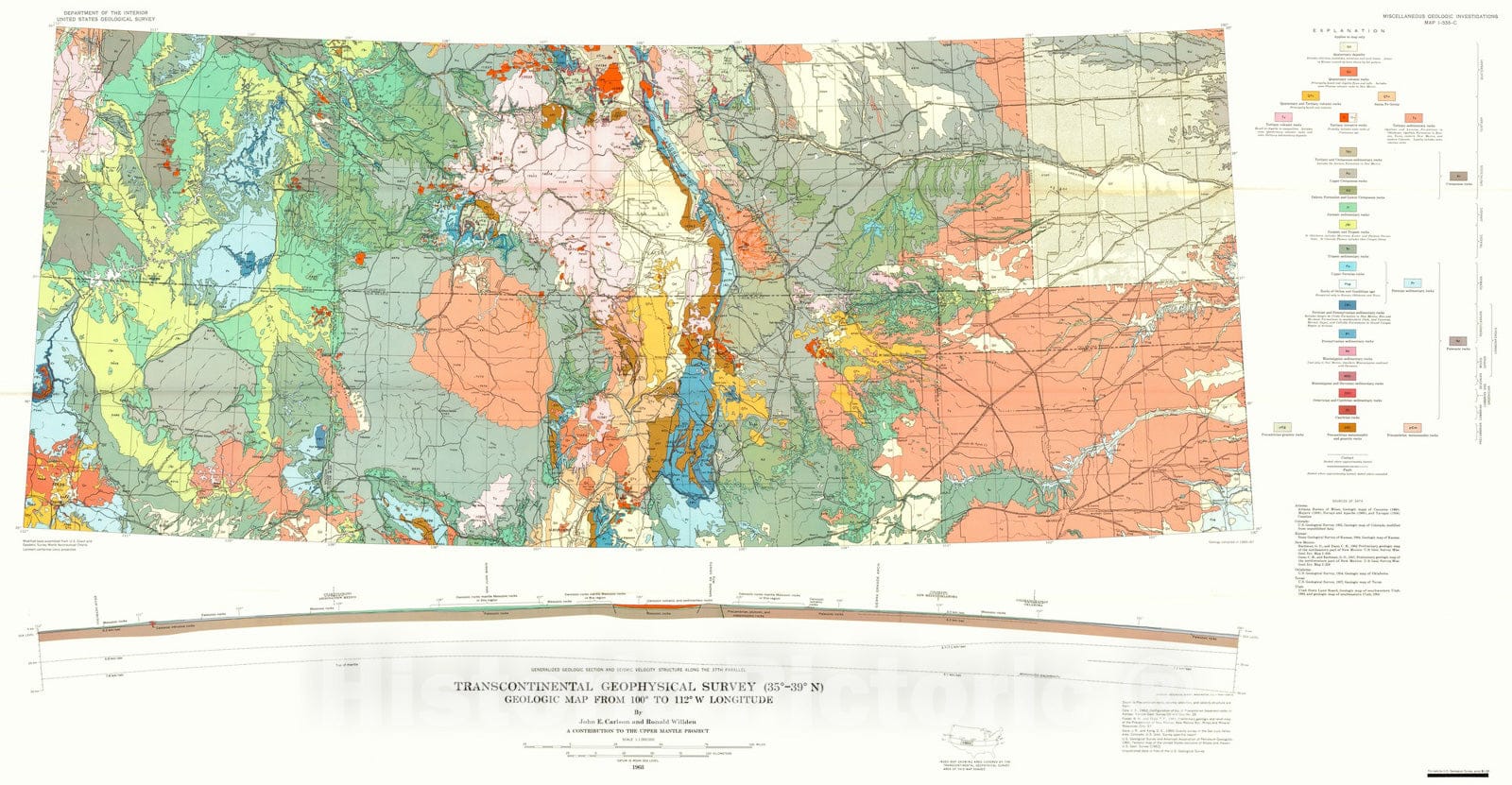 Map : Transcontinental geophysical survey (35 degrees - thirty-nine degrees N): Geologic map from 100 degrees to 112 degrees W longitude, 1968 Cartography Wall Art :