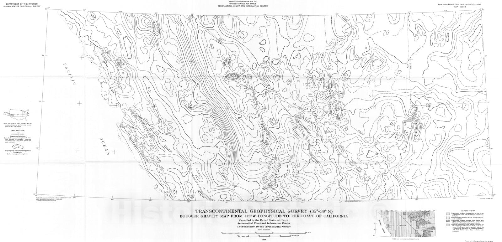 Map : Transcontinental geophysical survey (35 degrees - thirty-nine degrees N): Bouguer gravity map from 112 degrees W longitude to the coast of California, 1968 Cartography Wall Art :