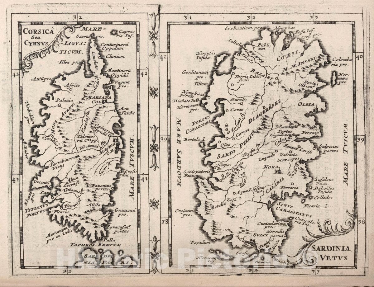 Historic Map : Corsica , France Corsica Seu Cyrnus. Sardinia Vetus, 1649 , Vintage Wall Art