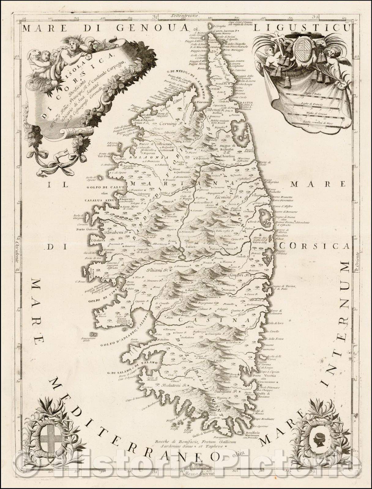 • .Historic Map - Isola De Corsica/Island of Corsica, 1690, Vincenzo Maria Coronelli - Vintage Wall Art