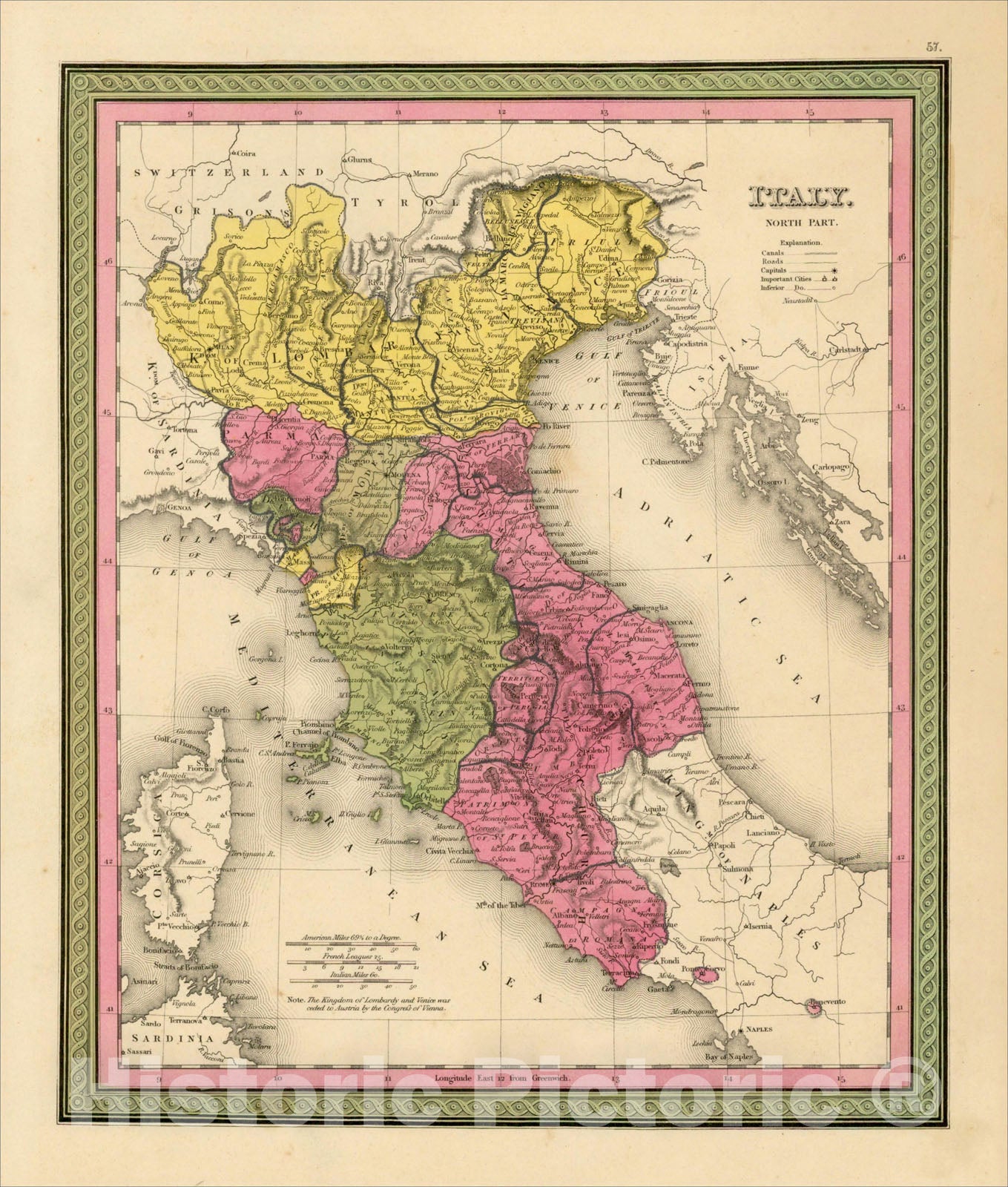 • .Historic Map : Italy. North Part. [and Corsica], 1845, Henry Schenk Tanner, Vintage Wall Art
