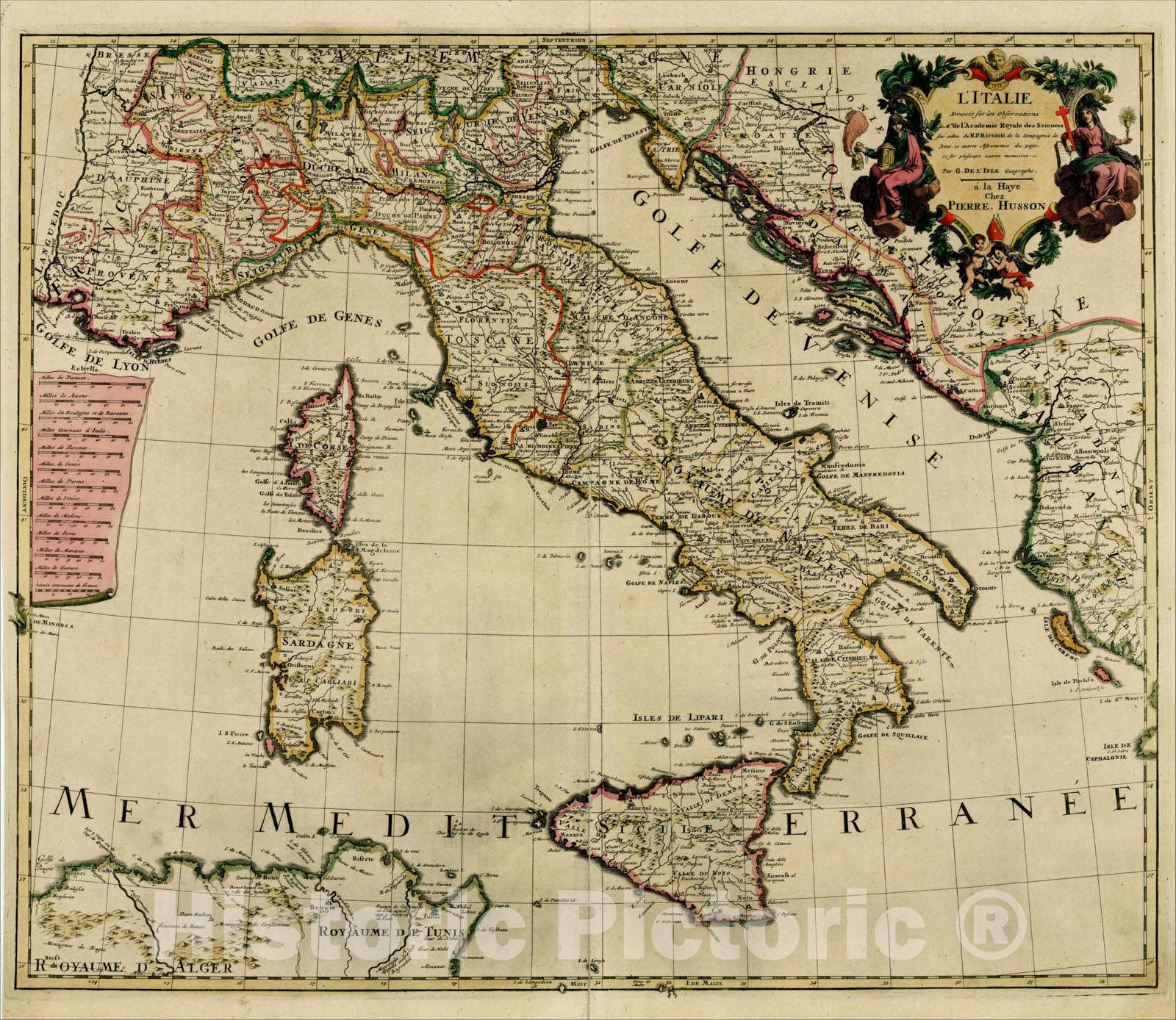 Historic Map : L'Italie Dressee sur les Observations, (includes Sicily, Sardinia & Corsica), 1706, Pierre Husson, Vintage Wall Art