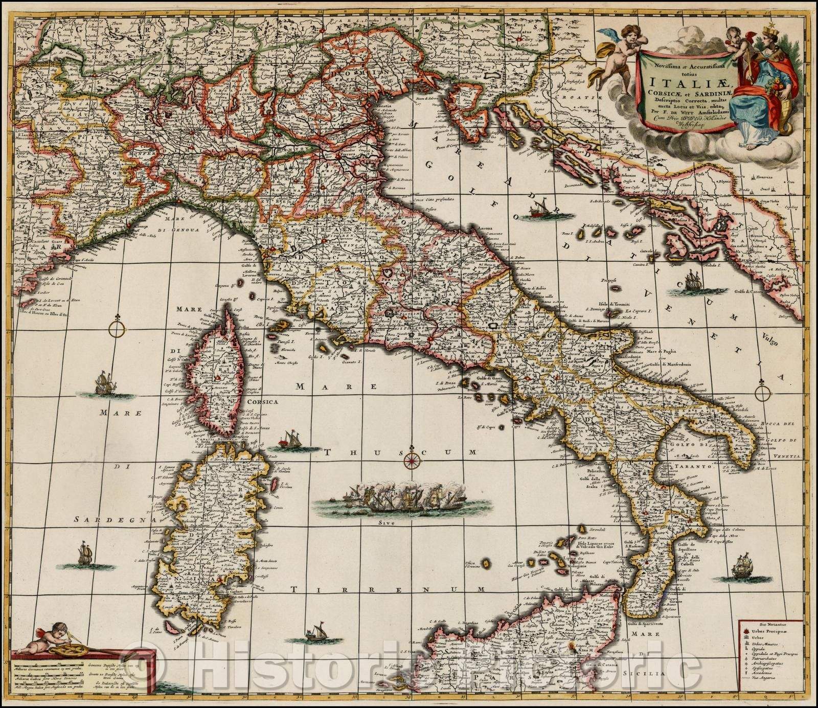 Historic Map - Novissima et Accuratissima totius Italiae Corsicae et Sardiniae Descriptio :: Italy and Corsica and Sardinia, 1680 - Vintage Wall Art