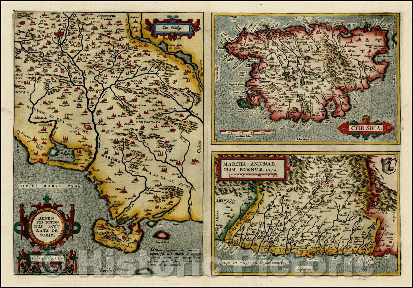 Historic Map - Senensis Ditionis Accurata Descrip [and] Corsica [and] Marcha Anconae Olim, 1587 - Vintage Wall Art