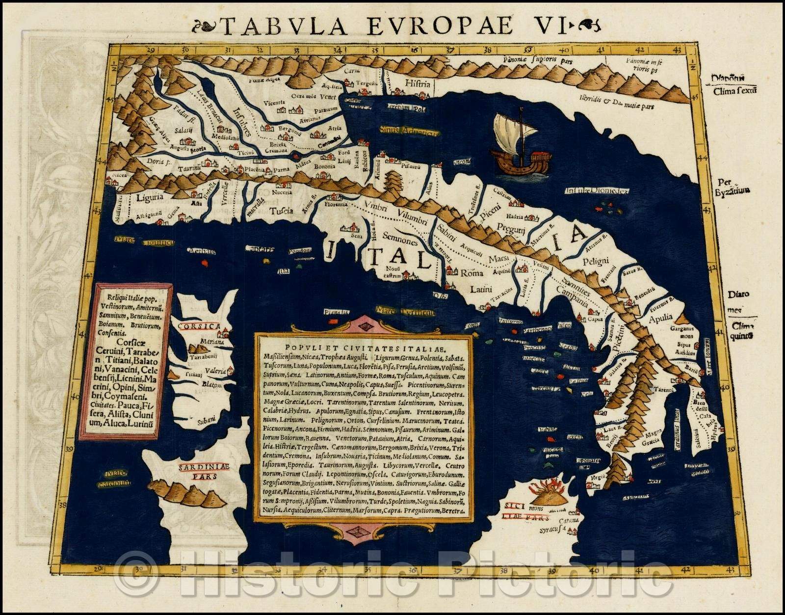 • .Historic Map - Tabula Europae VI Italy & Corsica, 1552, Sebastian M?nster - Vintage Wall Art