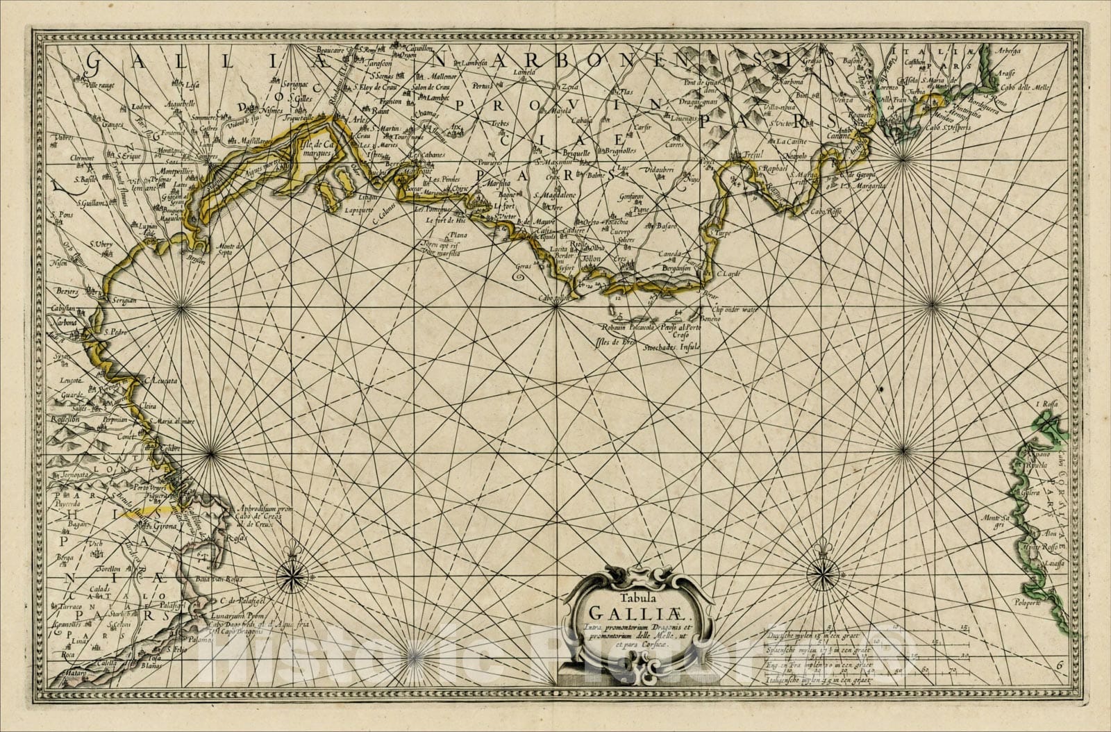 Tabula Galliae, Intra promontorium Dragonis et promontorium dell Mell ut et pars Corsicae., 1654,