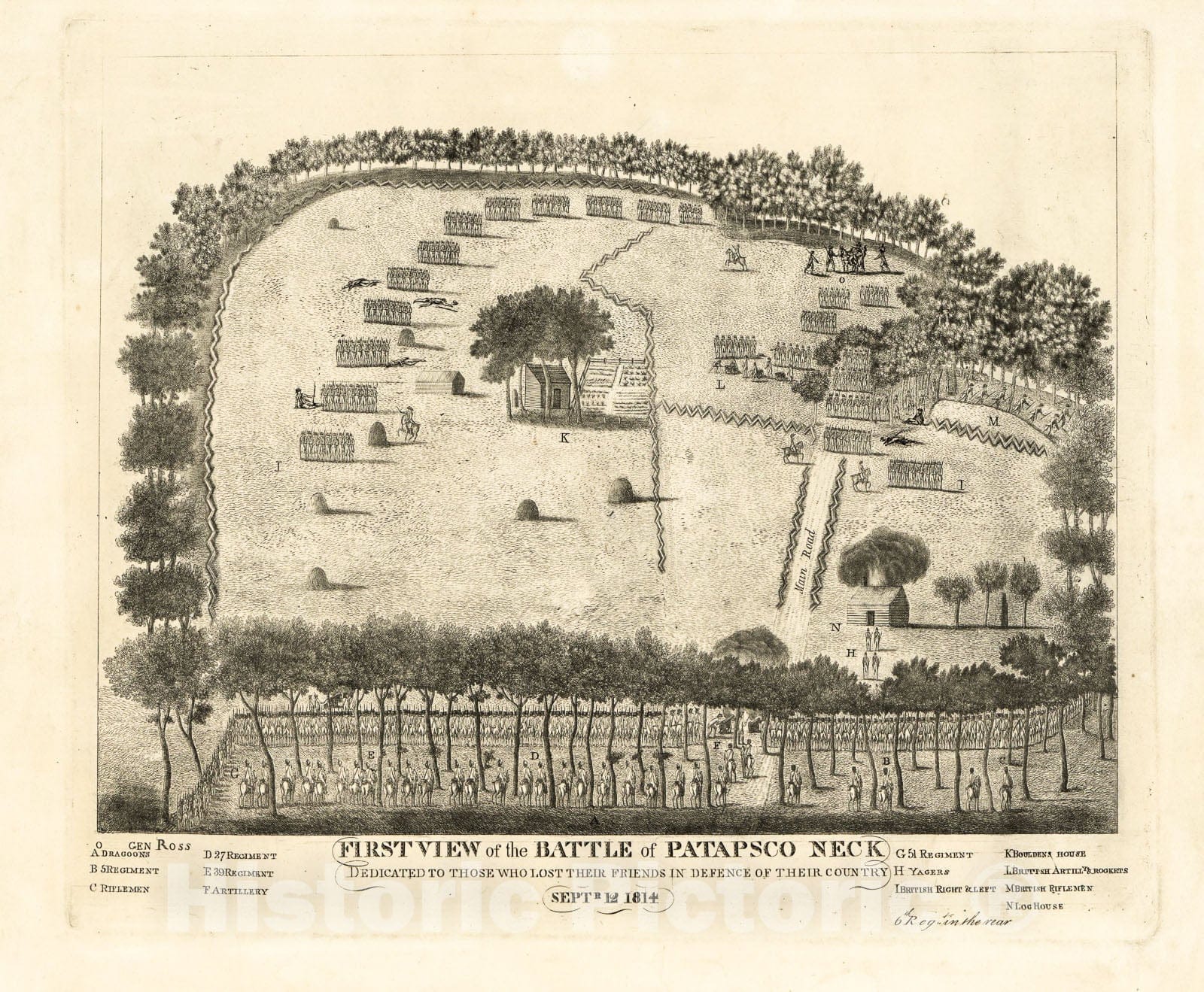 Historic 1814 Map - First View of The Battle of Patapsco Neck : Dedicated to Those who Lost Their Friends in Defence of Their Country, Sept'r 12 1814.