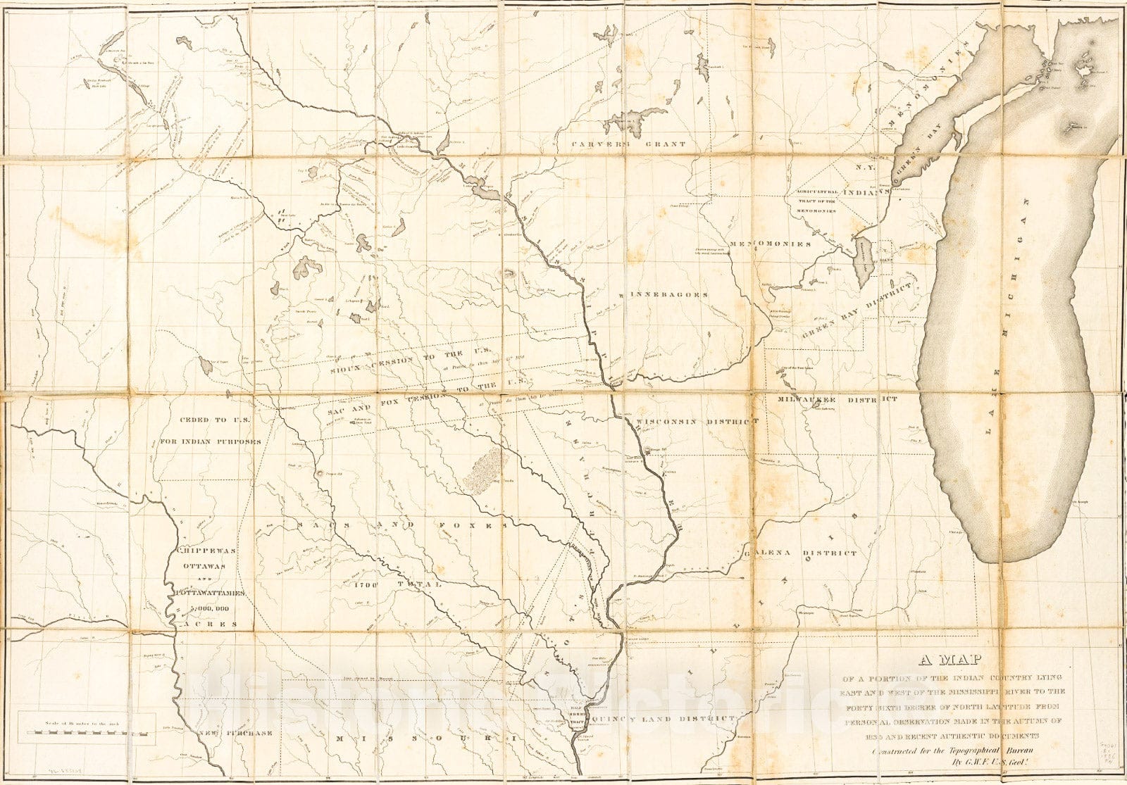 Historic 1836 Map - A map of a Portion of The Indian Country Lying East and west of The Mississippi River to The Forty Sixth Degree of North Latitude from Personal Observation
