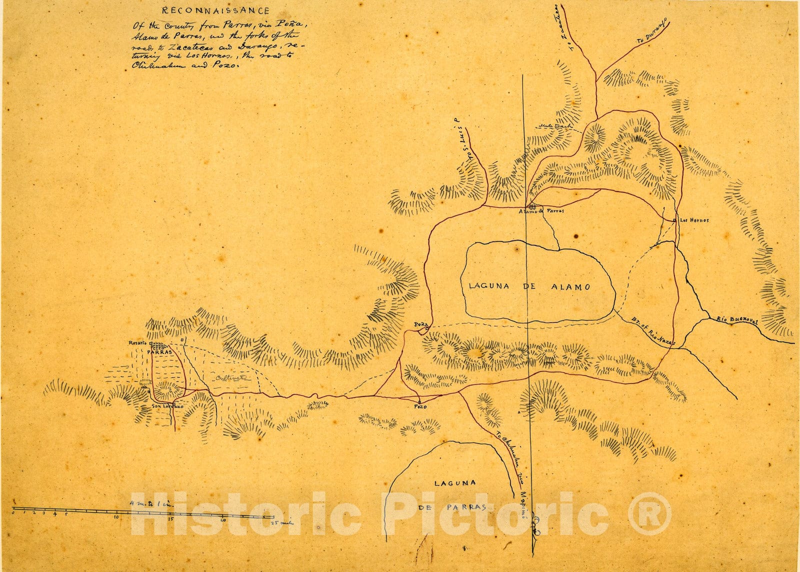 Historic 1846 Map - Reconnaissance of The Country from Parras via Peña, Alamo de Parras, and The Forks of The Roads to Zacatecas and Durango, Returning via Los Hornos