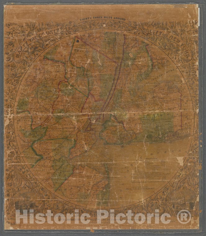 Historic 1854 Map - Map Of The Country Thirty Three Miles Around The City Of New Yorof New York City And State - New York City & Vicinity