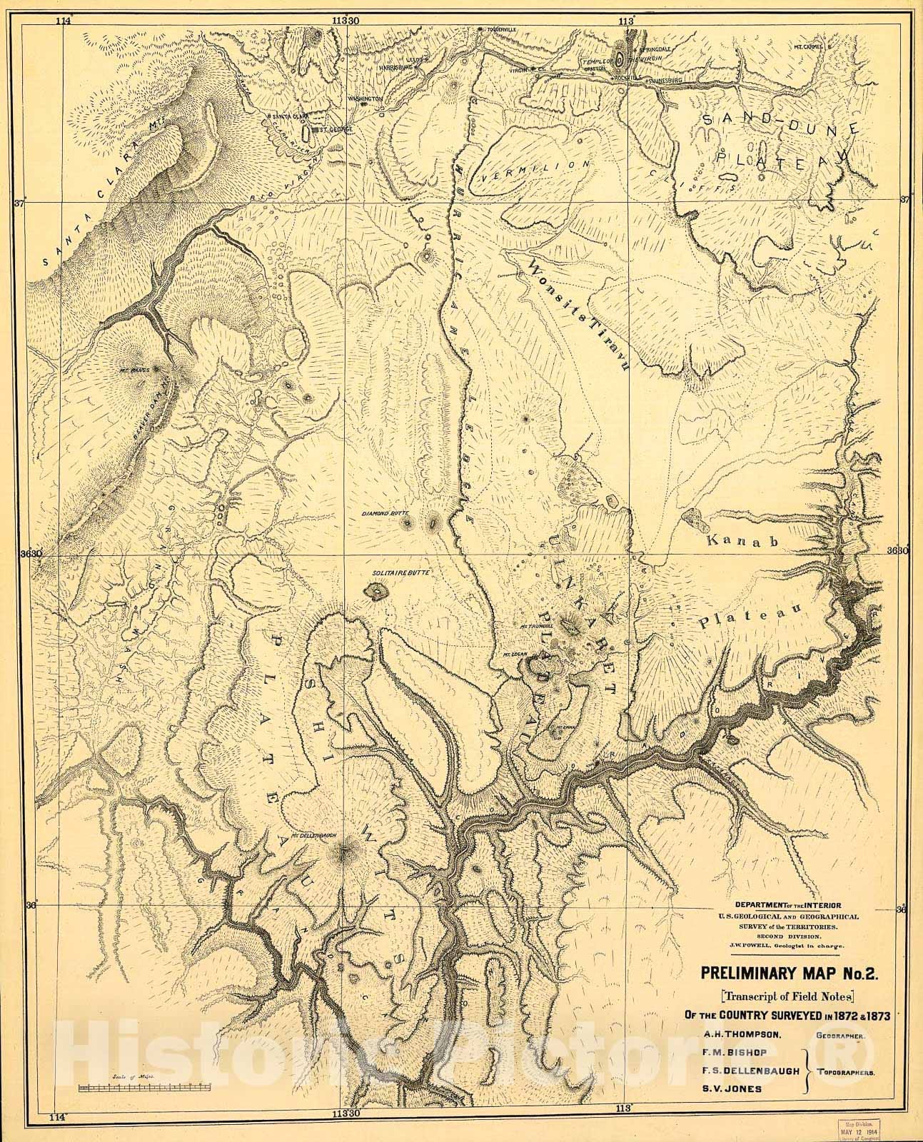 Preliminary map no.2 of the country surveyed in 1872 and 1873.