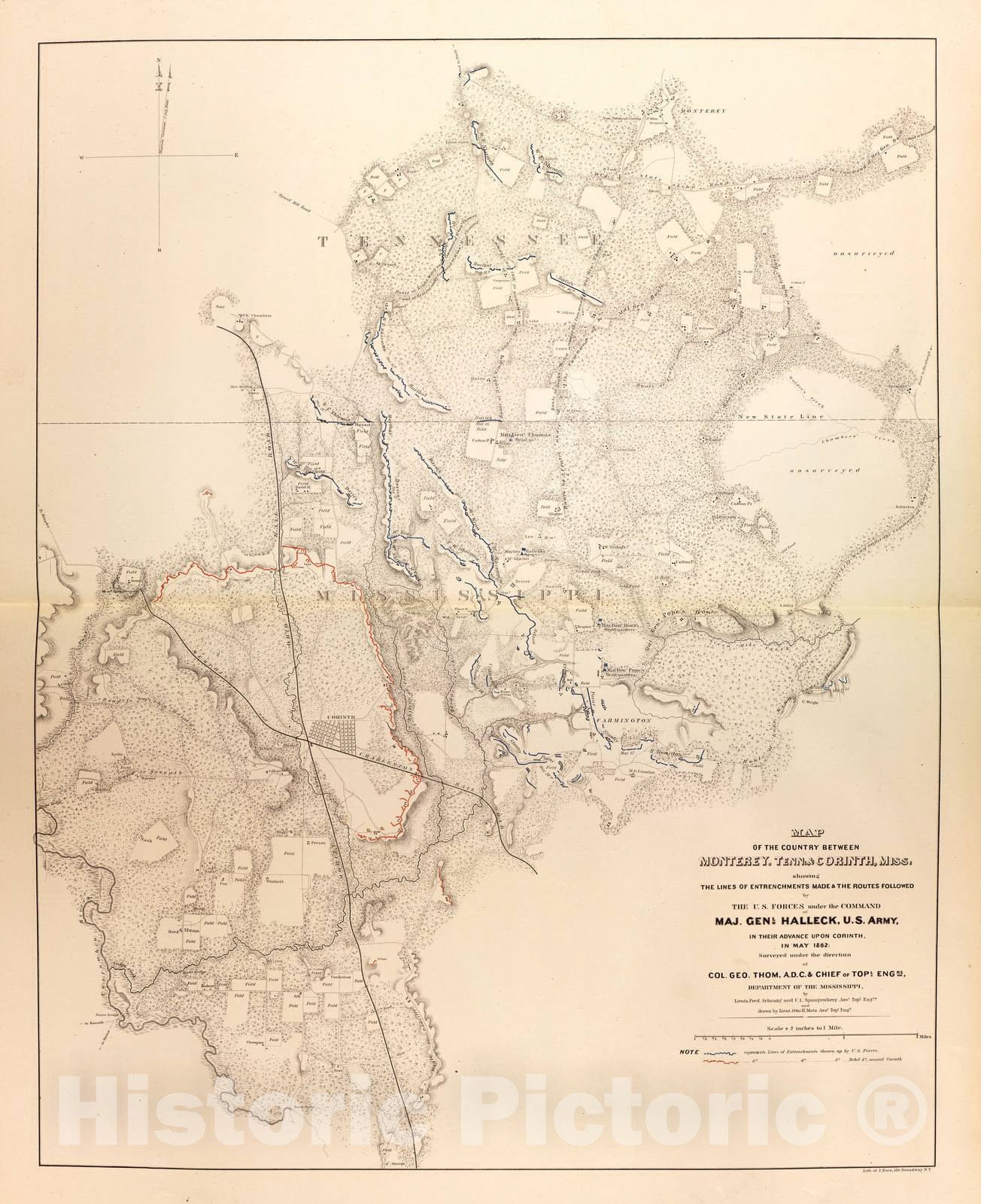 Historic 1879 Map - Military maps. - Map of The Country Between Monterey, Tenn. and Corinth, Miss, 1862