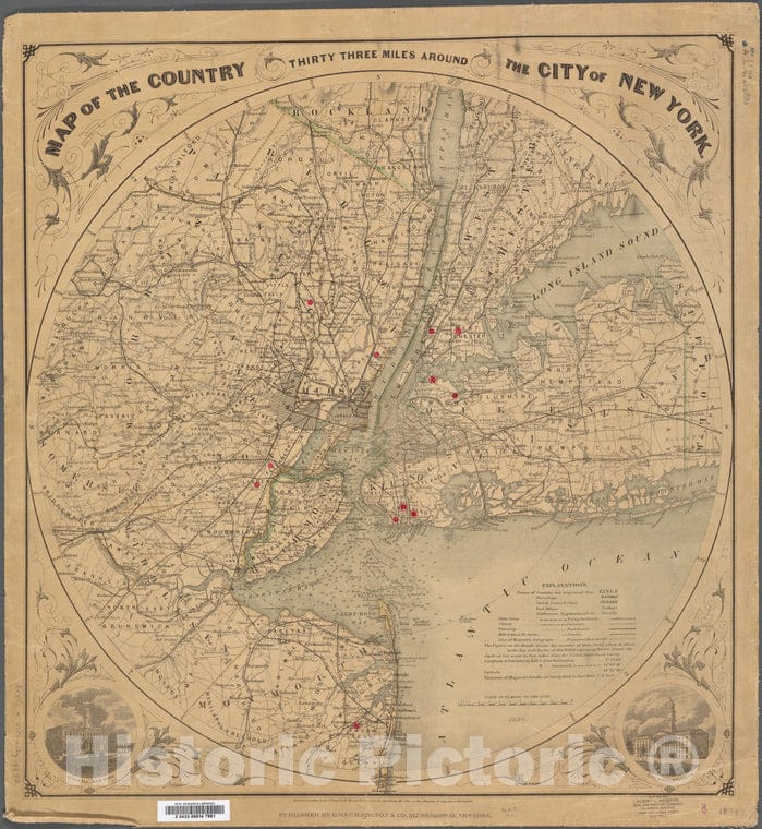 Historic 1890 Map - Map Of The Country Thirty-Three Miles Around The City Of New York.Of New York City And State - New York City & Vicinity