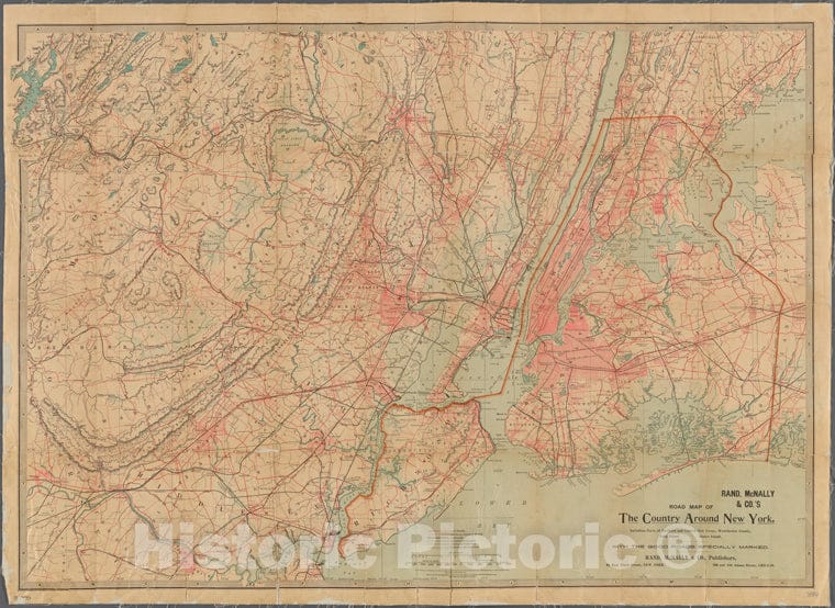 Historic 1894 Map - Rand Mc Nally & Co.'S Road Map Of The Country Around New York. Iof New York City And State - New York City & Vicinity