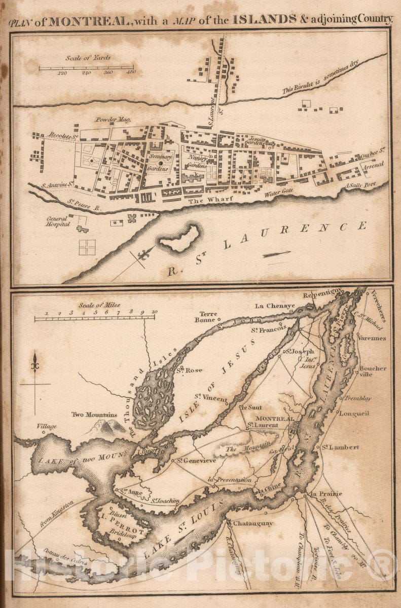 Historic Map : 1813 National Atlas - Plan of Montreal, with Historic Wall Map of The Islands & adjoining Country. - Vintage Wall Art
