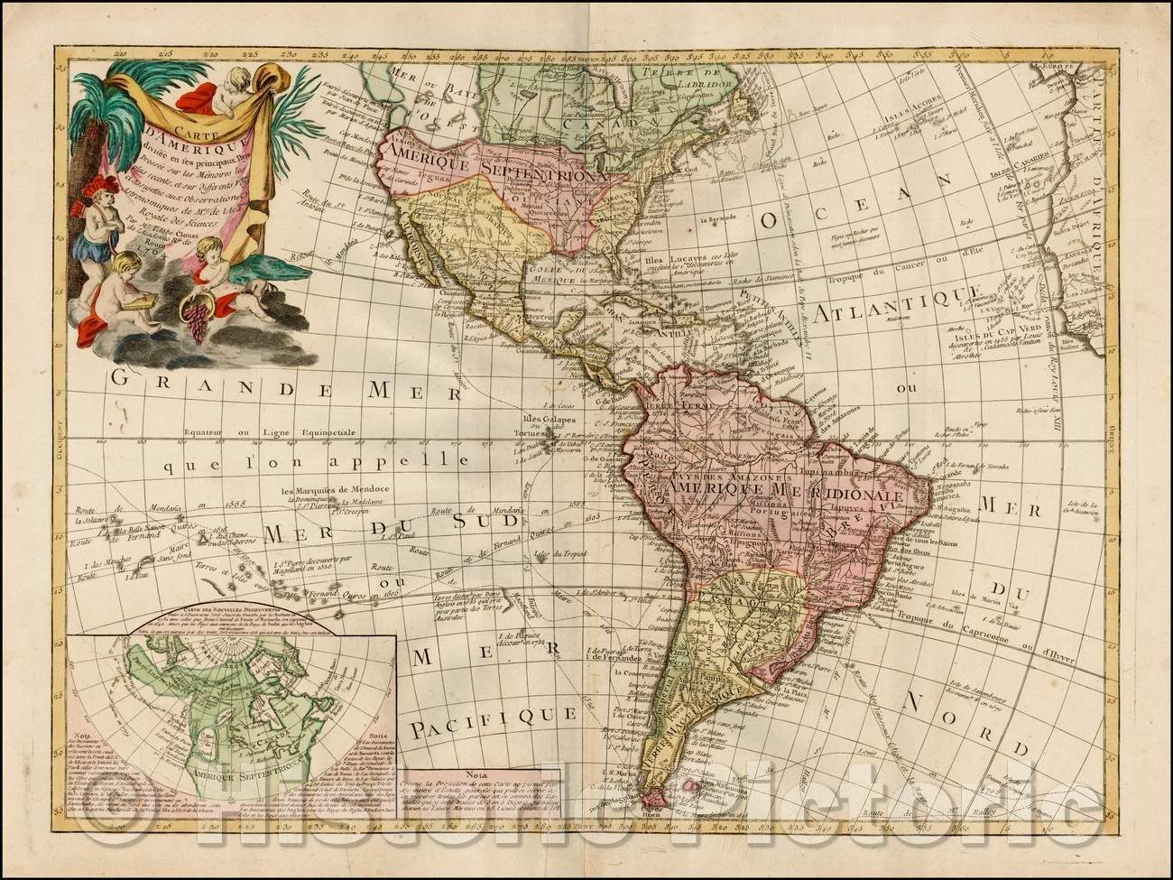• .Historic Map - Carte D'Amerique divisee en ses principaux Pays, Dressee sur les Memoires :: America divided into its major country, 1764 - Vintage Wall Art