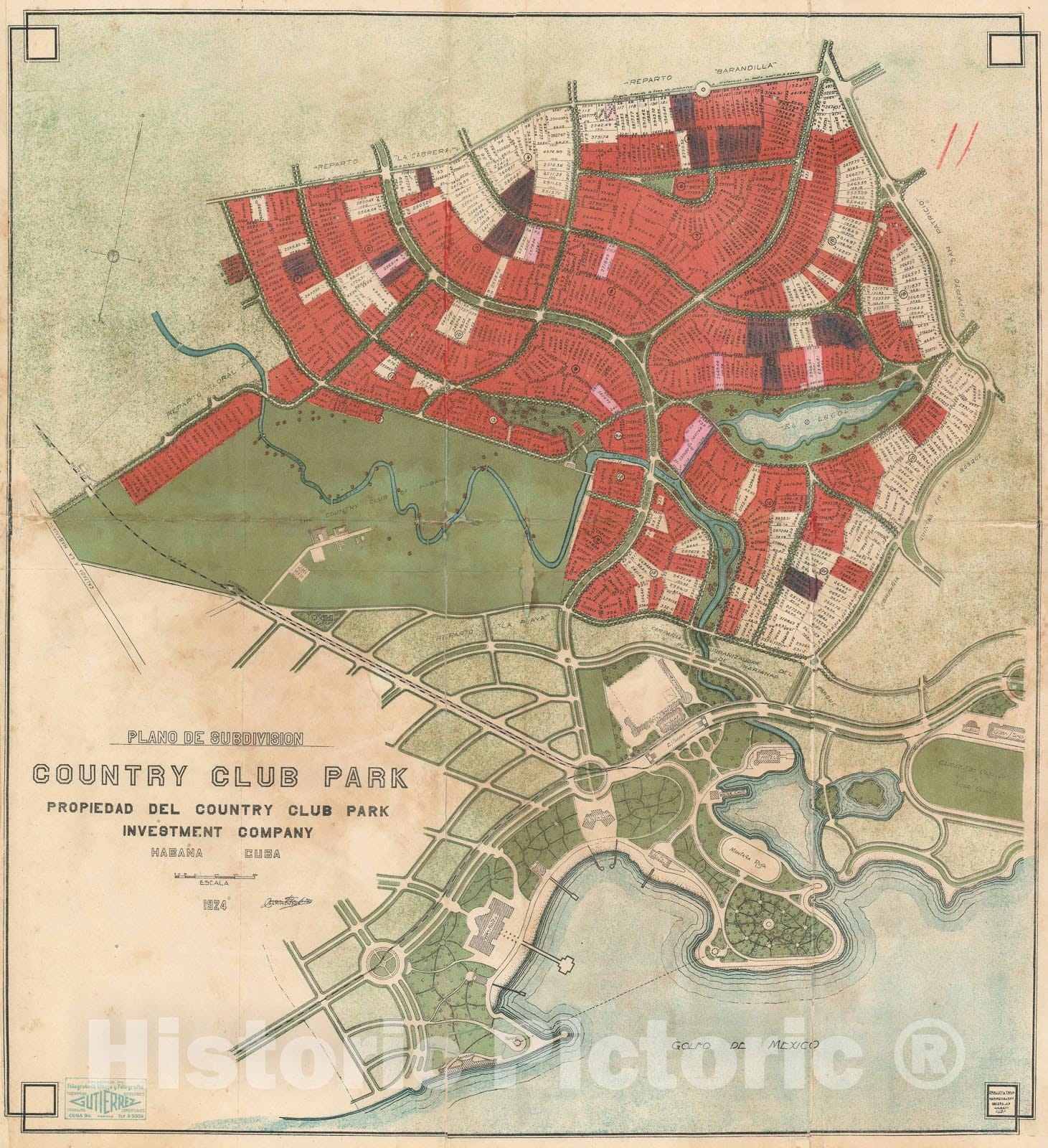 Historic Map : Country Club Park / Siboney, Havana, Cuba, Real Estate, 1924, Vintage Wall Art