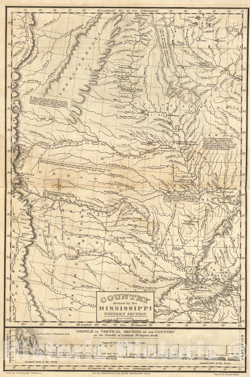 Historic Map : Country drained by the Mississippi Western Section., 1823, Vintage Wall Art