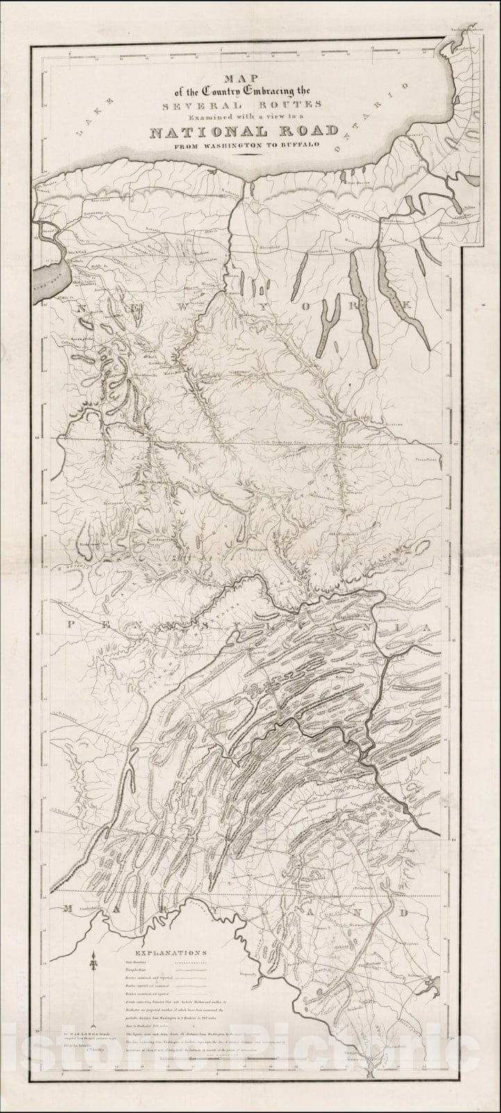 Historic Map : Map of the Country Embracing the Several Routes Examined with a view to a National Road From Washington To Buffalo., 1827, Gales & Seaton, Vintage Wall Art