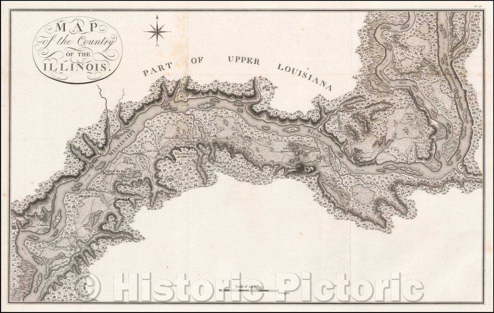 Historic Map - Map of the Country of the Illinois, 1826, Victor George Henri Collot - Vintage Wall Art
