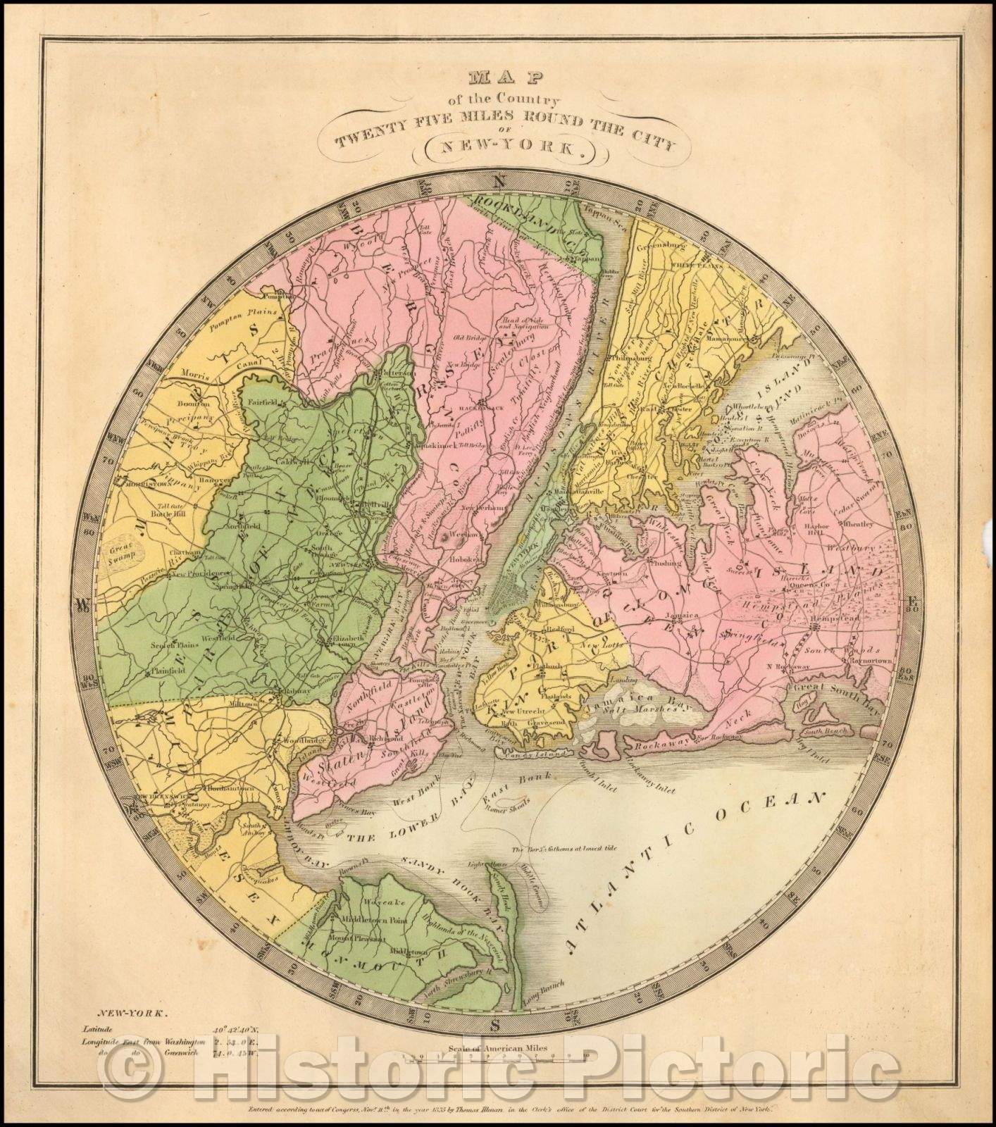 Historic Map - Map of the Country Twenty Five Miles Round The City of New-York, 1834, David Hugh Burr - Vintage Wall Art