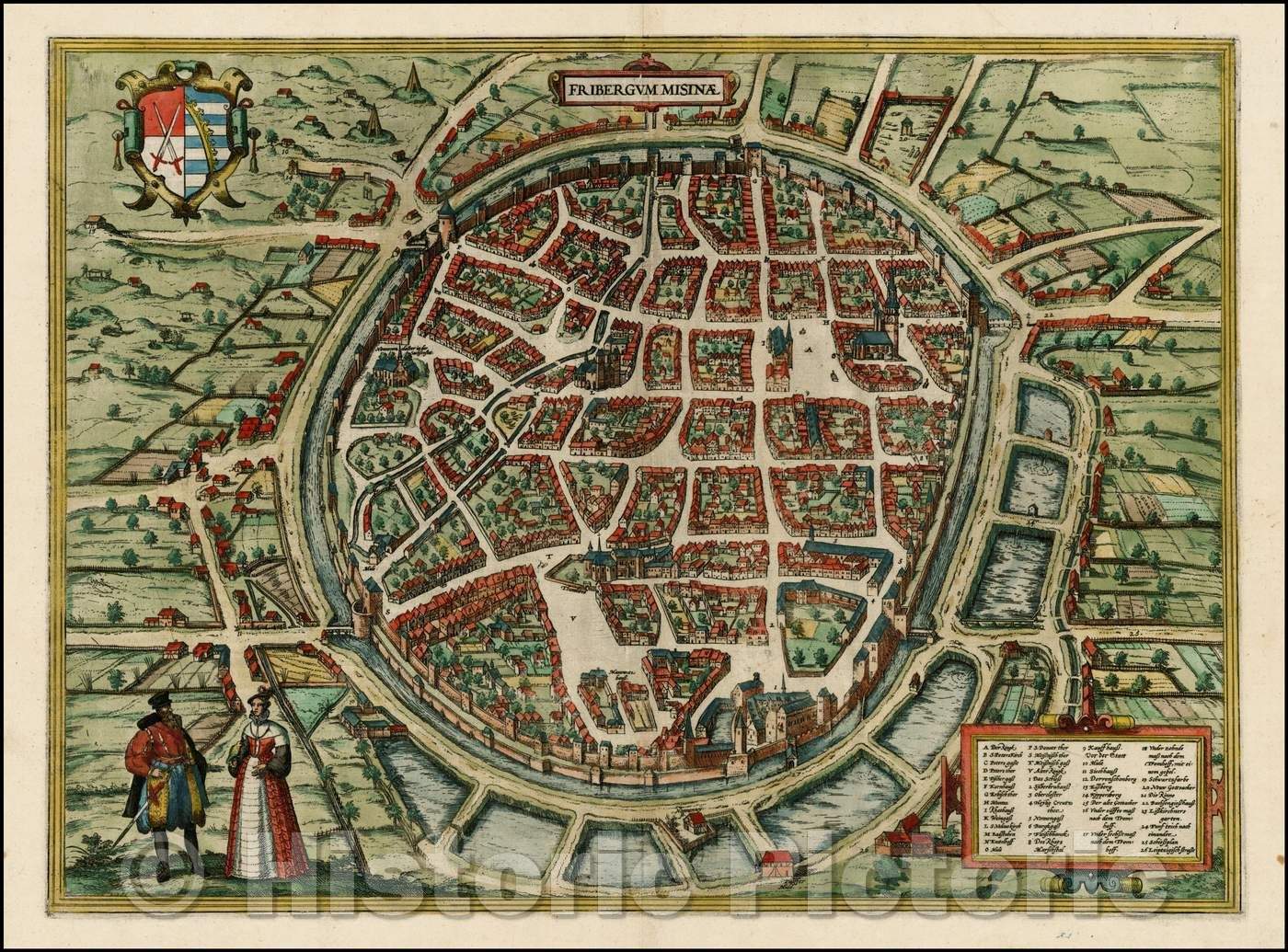 • Historic Map - Fribergum Misinae/View of Freiberg, city walls and surrounding countryside, 1580, Georg Braun - Vintage Wall Art