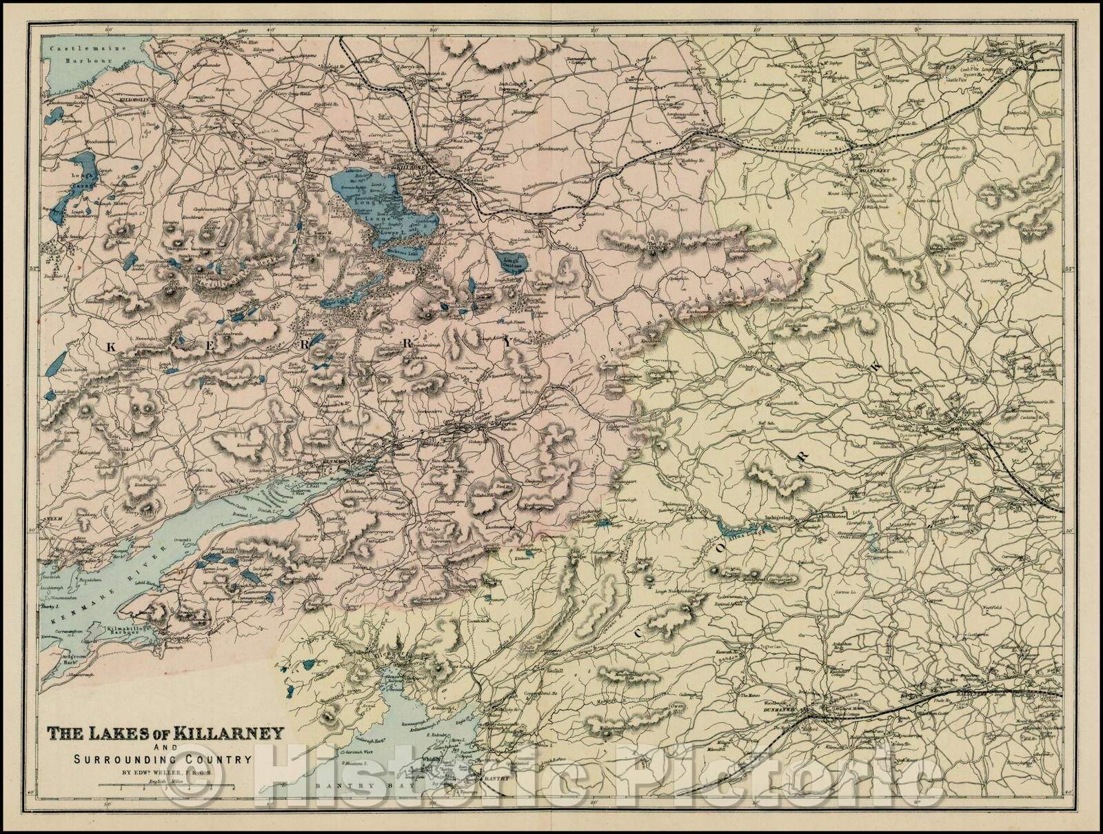 Historic Map - The Lakes of Killarney and Surrounding Country, 1863, Edward Weller v2