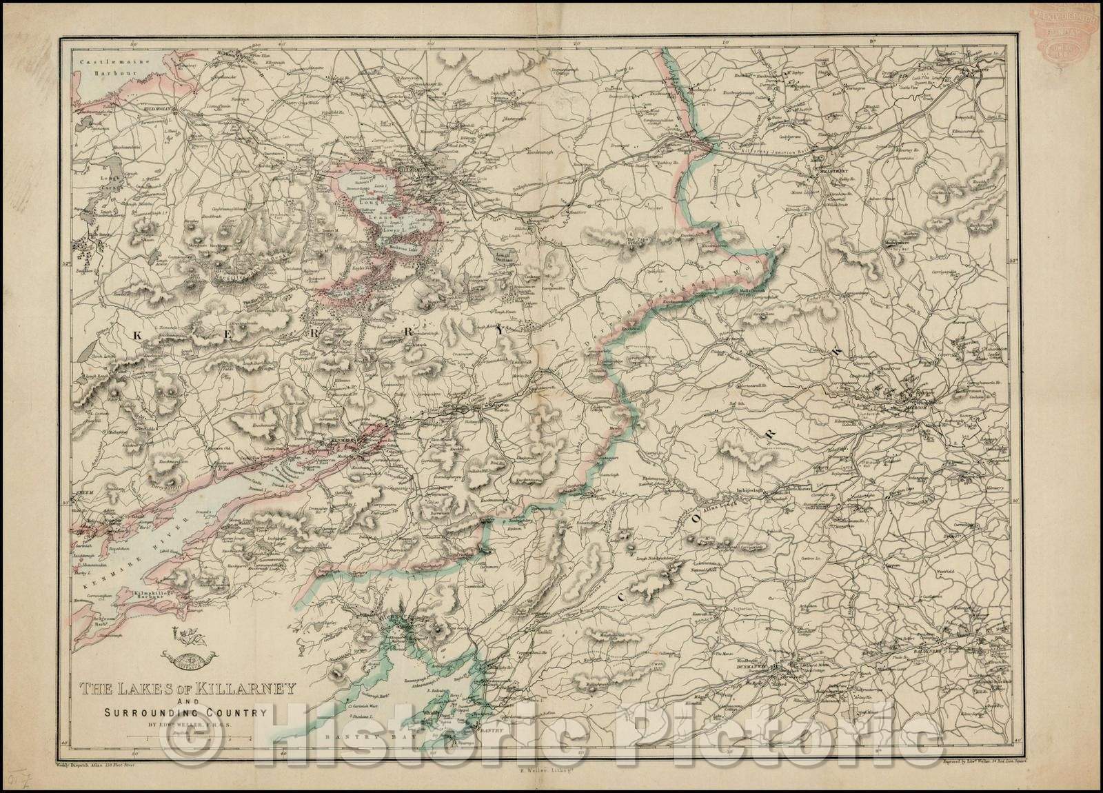 • .Historic Map - The Lakes of Killarney and Surrounding Country, 1863, Edward Weller v1